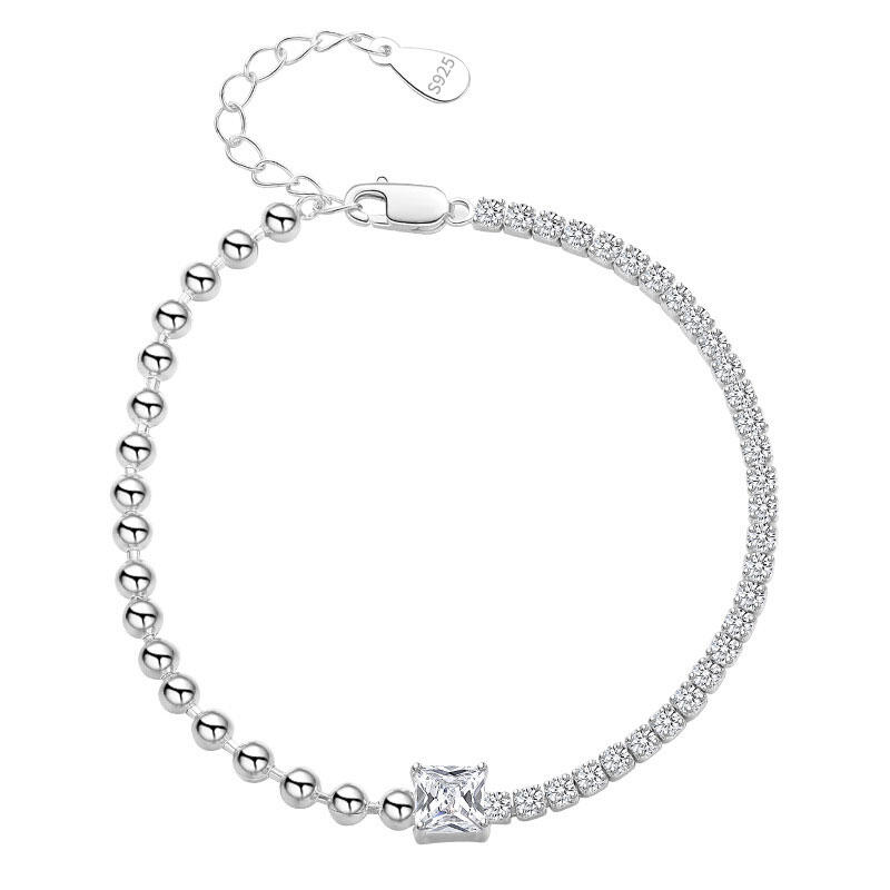 This sterling silver bead bracelet reinvents the classic by setting a white stone in the center and accenting a princess cut stone finish. Make this standout silhouette part of your everyday bracelet stack.
