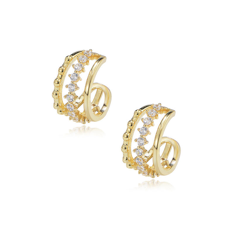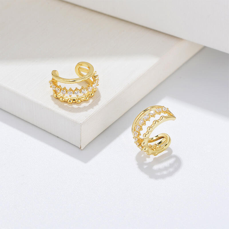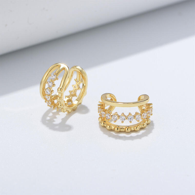 Add sparkle to any look with this pair of playful clip earrings. Each earring is fashioned in sterling silver with gold plating, finished with sparkling white stones to make it really shine on your ear. Clip-on earrings are the perfect way to decorate your ear lobes without the pain of having them pierced.