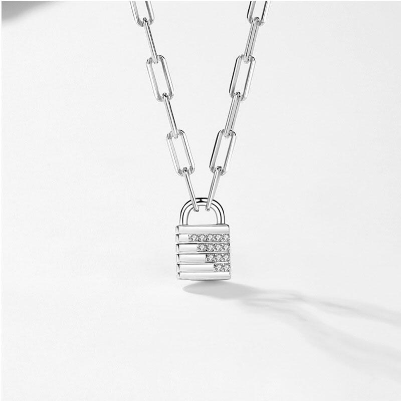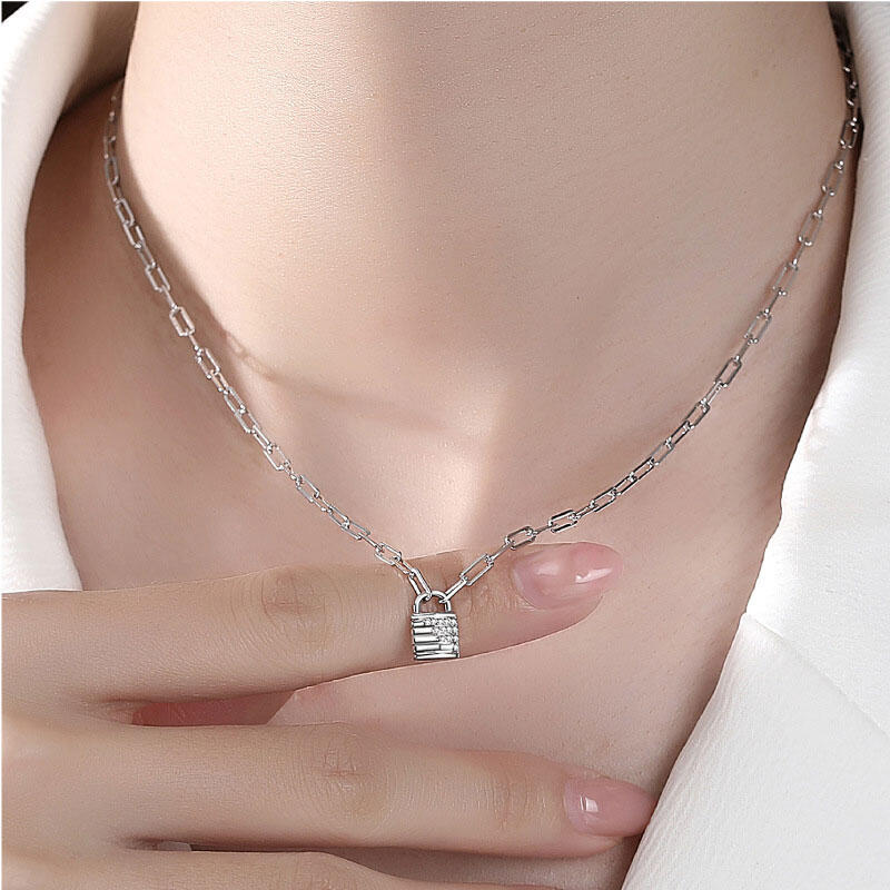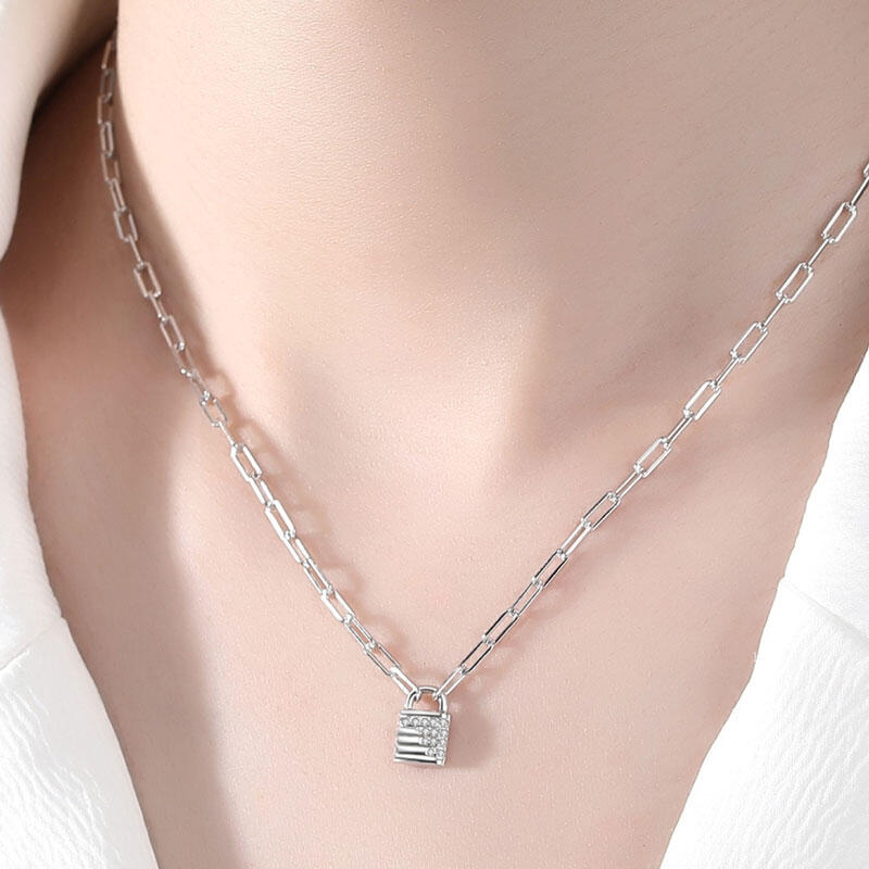 Jeulia Creative Micro Inlaid Lock Sterling Silver Necklace