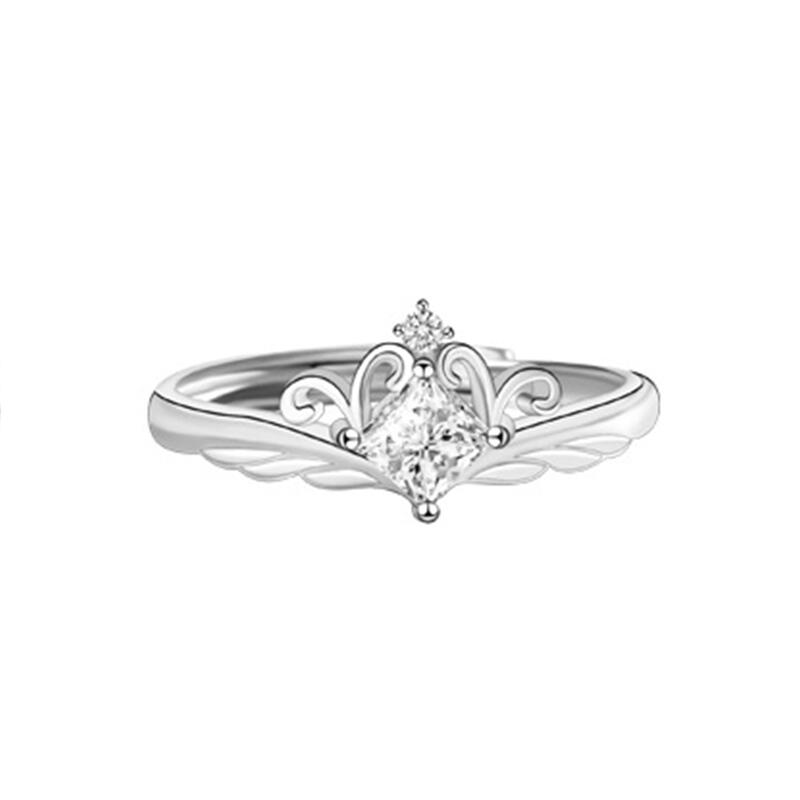 Jeulia Crown Design Princess Cut Sterling Silver Adjustable Ring
