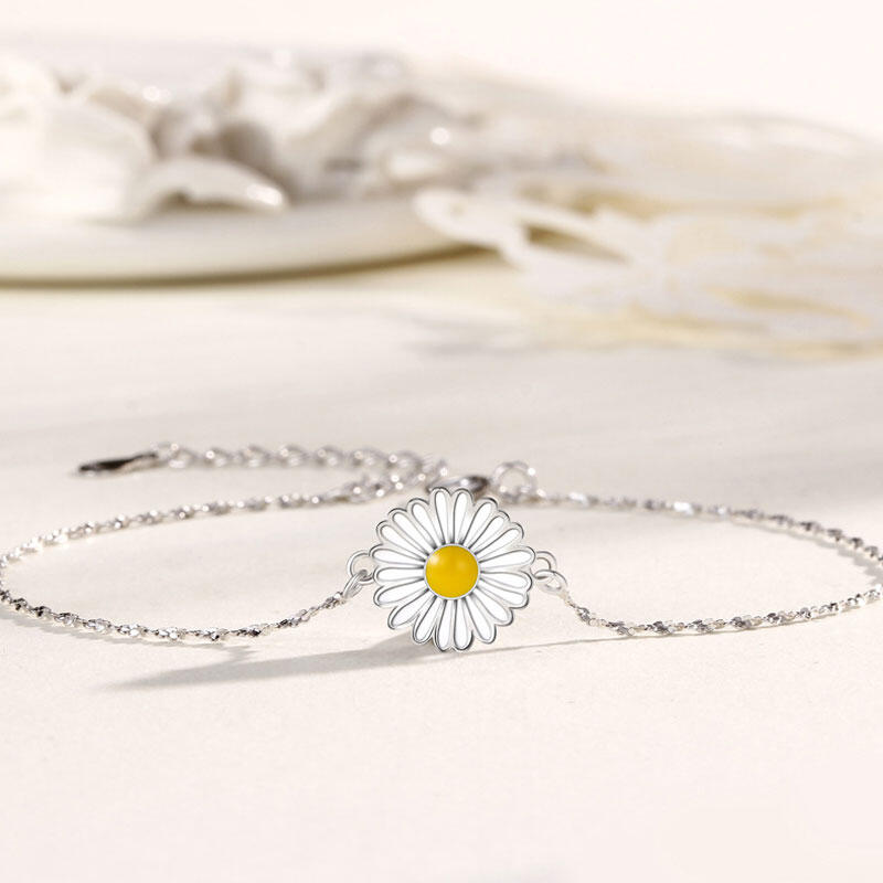 Nothing says, “She loves me!” like our Daisy bracelet. Treat those special women in your life with this dainty daisy bracelet featuring an intricate floral design. It is the perfect gift for birthdays or anniversaries or just to say, “I love you”.