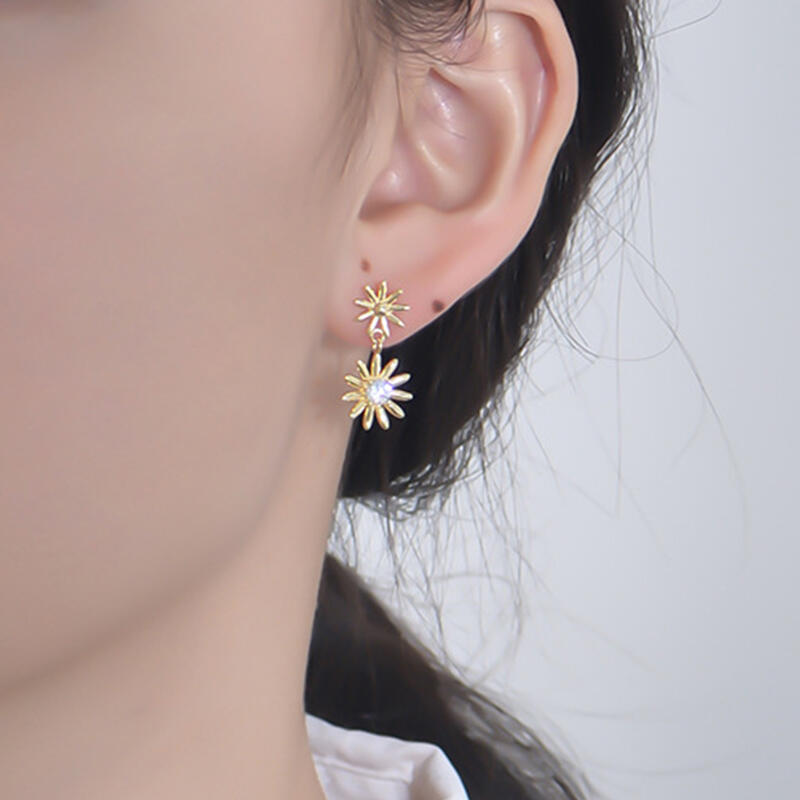 Pretty daisy drop earrings created from sterling silver. These vibrant earrings are set to bring a smile to the lucky recipient. This pair of earrings will show an charming look on your ears.
