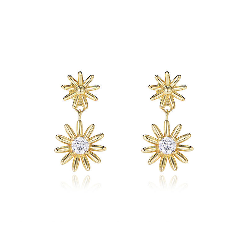 Jeulia Daisy Flower Sterling Silver Drop Earrings