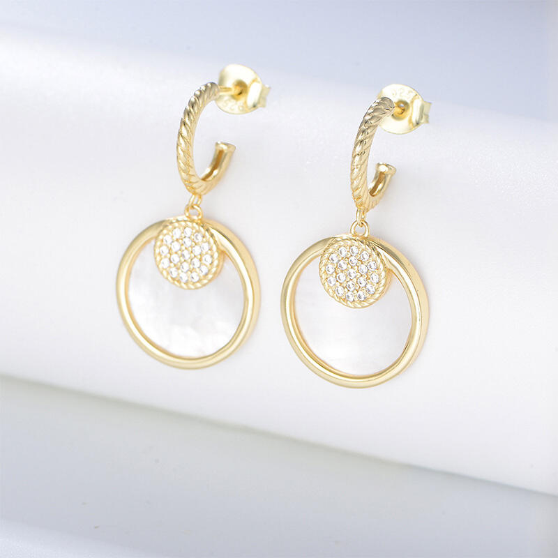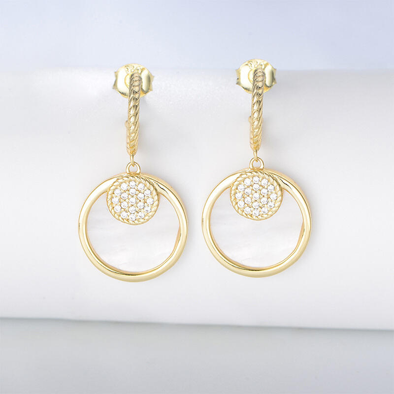 Jeulia Double Circle Sterling Silver Mother of Pearl Earrings