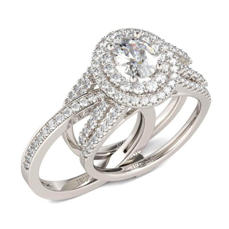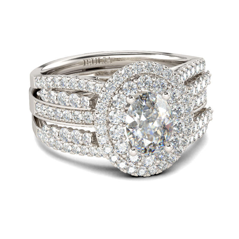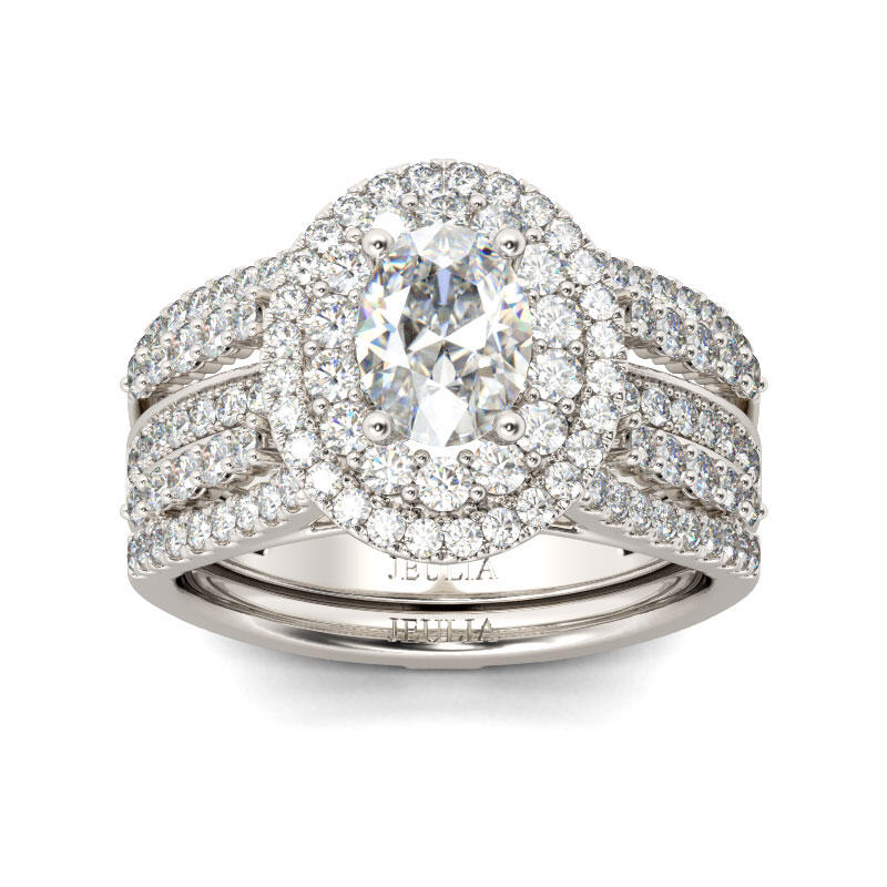 Jeulia Double Halo Oval Cut Sterling Silver Ring Set