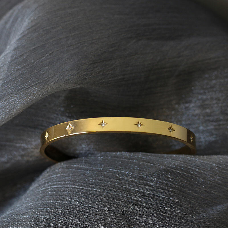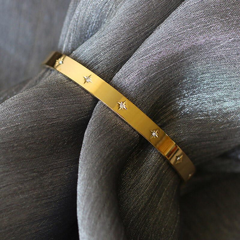 Jeulia Eight Pointed Star Titanium Steel Bangle Bracelet