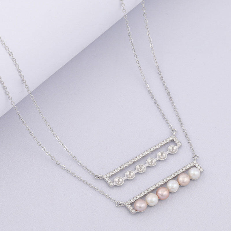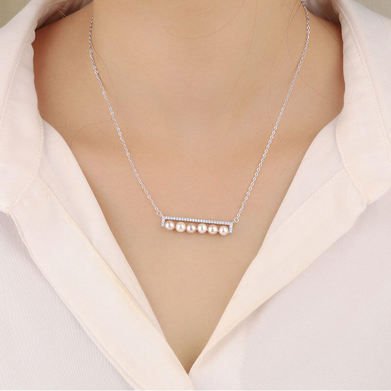 Simple lines, with crystal clear pearls, fashionable and charming, the choice of preservation. With six shimmering pearls delicately suspended on an sterling silver crossbar, our beam of light pendant will brighten up any day.