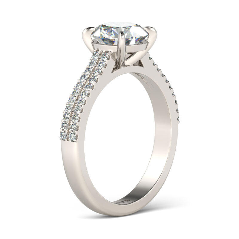 Show her all the love you hold in your heart with this classic ring. For your proposal or anniversary, it will be a good choice. Crafted in 925 sterling silver, this sparkling design features a round center stone composite atop a two row paved shank. Sure to dazzle, this engagement ring captivates with 8mm center stone and a bright polished shine. The ring will sparkle crazily on your finger. Just take this and it won't disappoint you.