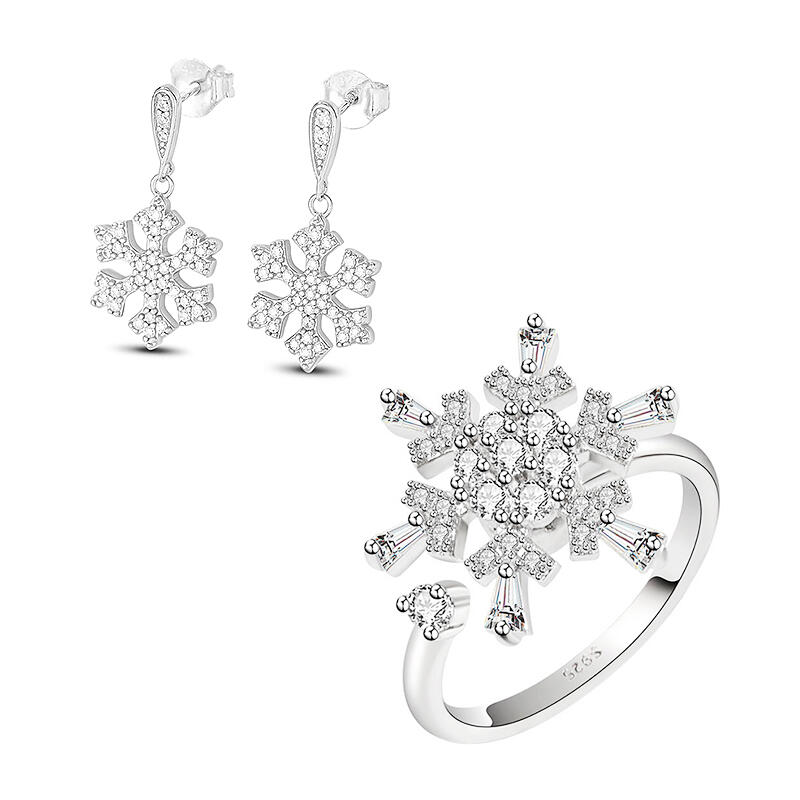 These snowflake peices capture the beauty and intricacy of a snowflake gently falling from the sky during a winter snow. Each designed is full of detailing, finished with sparkling white stones to make it really shine on your ear.