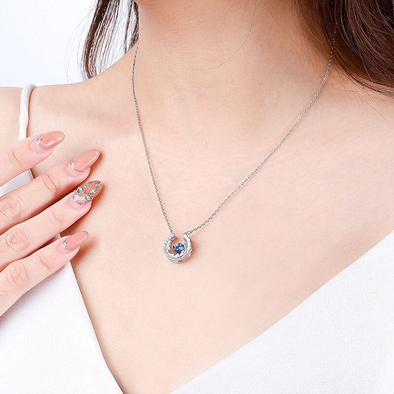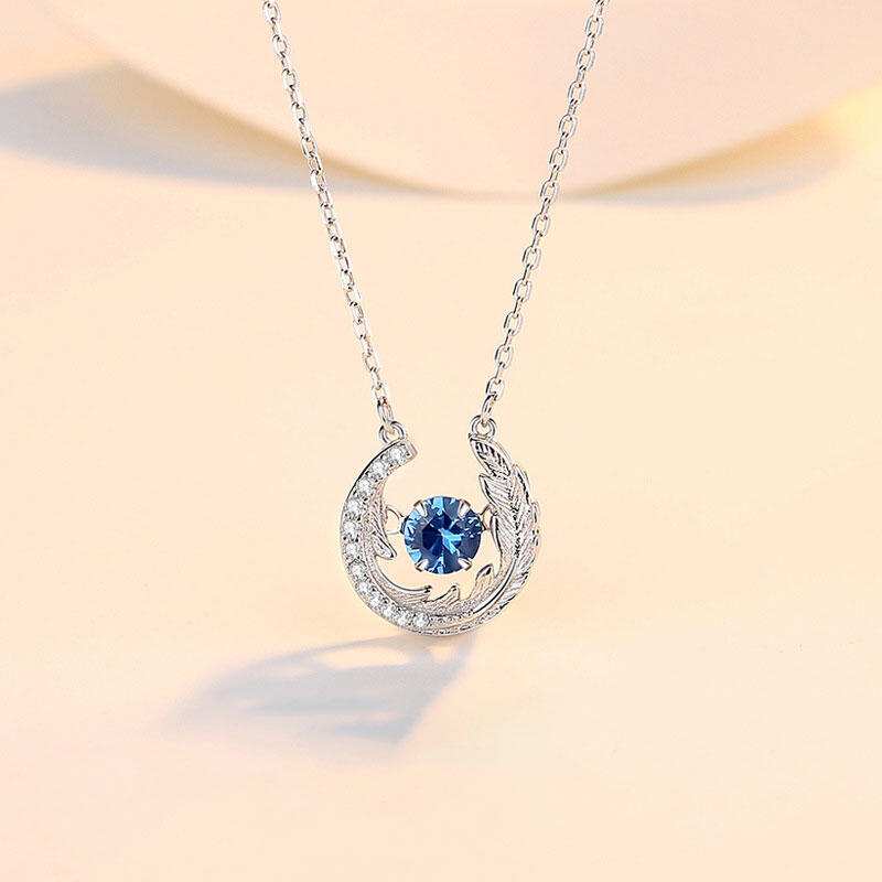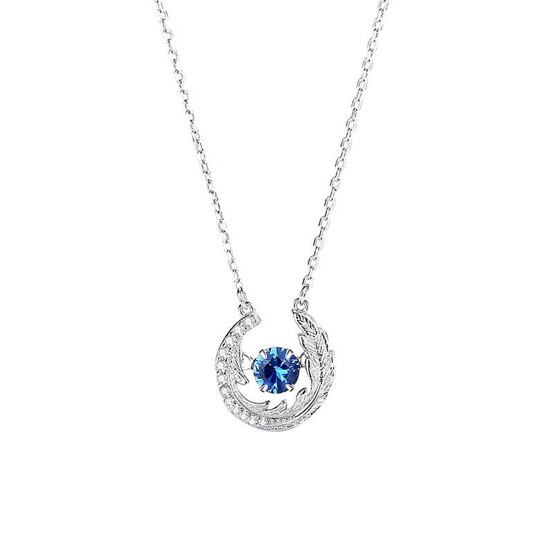 Jeulia Feather Round Cut Sapphire Sterling Silver Necklace