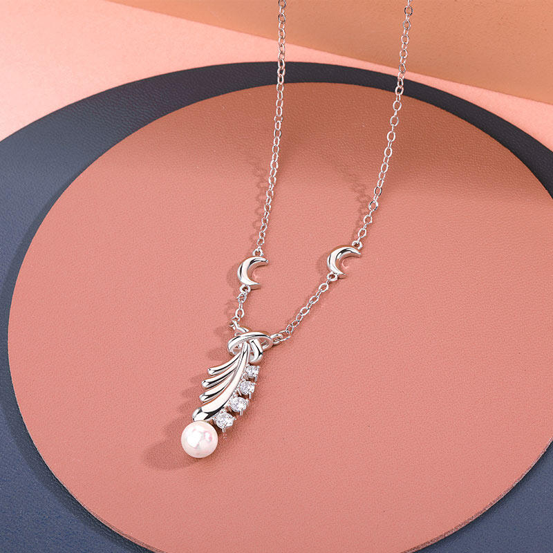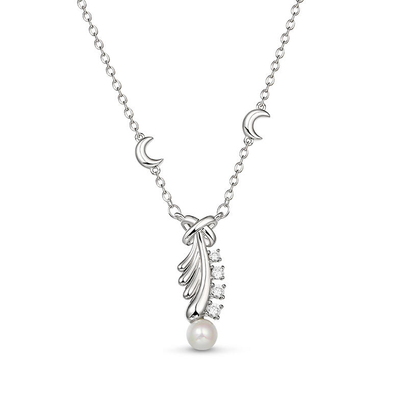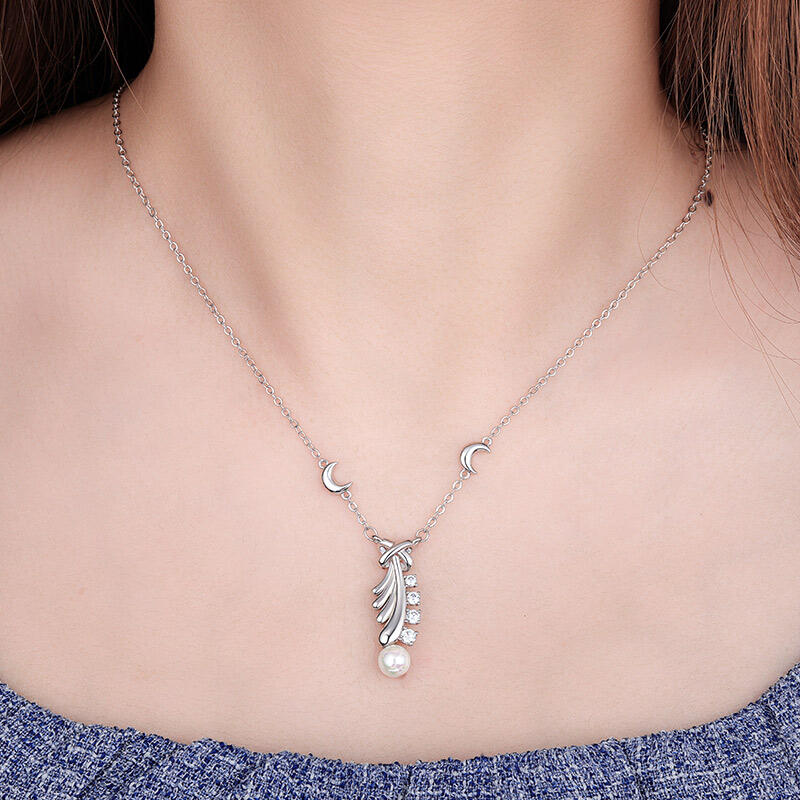This silver feather pearl pendant is a stunning symbol of freedom. This necklace is a reminder that we can all follow our dreams. The feather has a lot of delicate details, which you will adore. This feather pearl necklace will be loved.