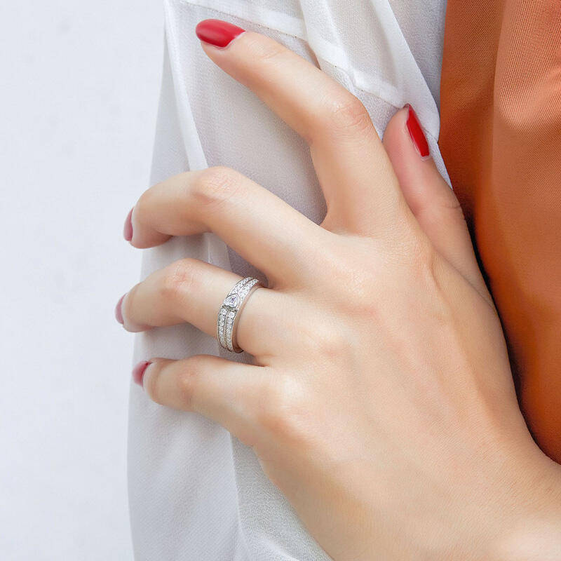 Jeulia Flat Two-Row Pave Stones Sterling Silver Women's Band