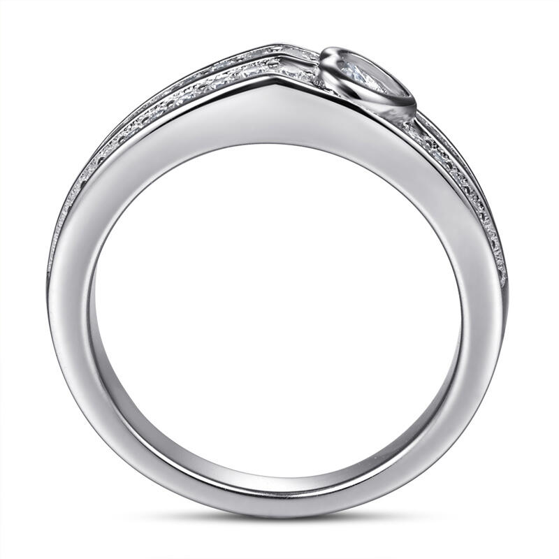 Raise the fashion bar with this sparkling ring. Created in sterling silver, this modern style showcases one heart stone and two rows of sparkling round stones set in the band.