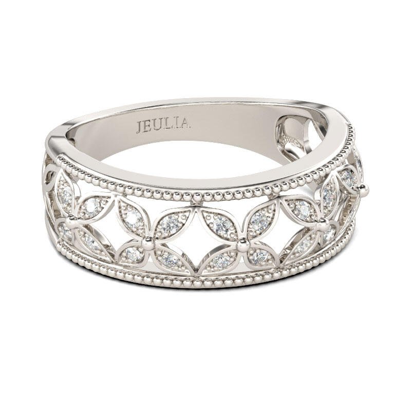 Jeulia Floral Design Round Cut Sterling Silver Women's Band
