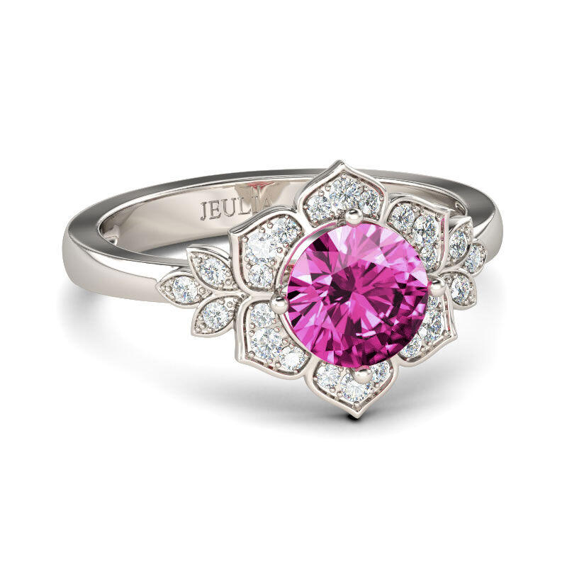 Jeulia Flower Design Round Cut Sterling Silver Ring