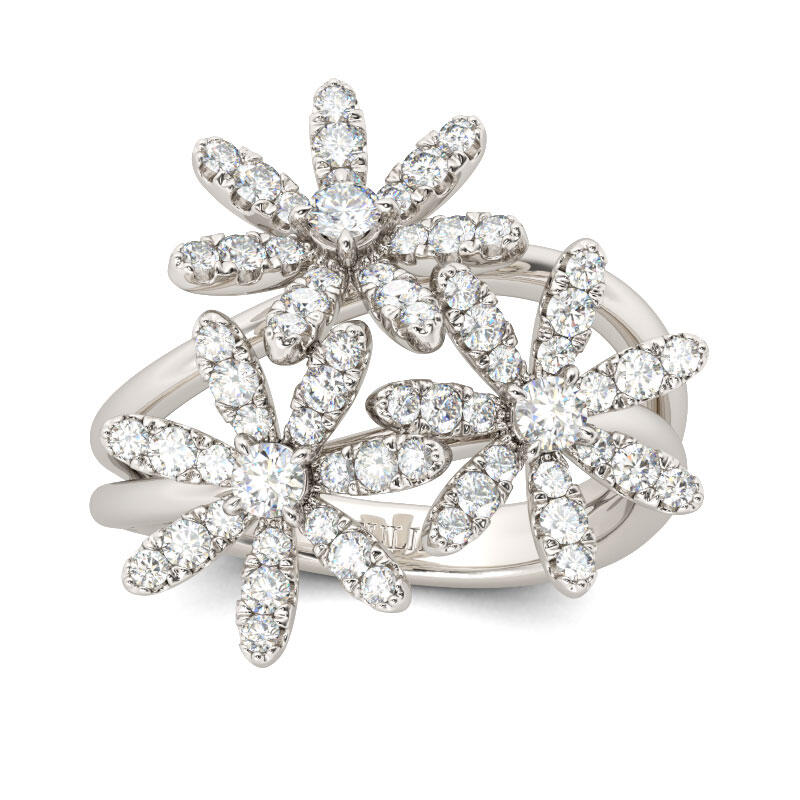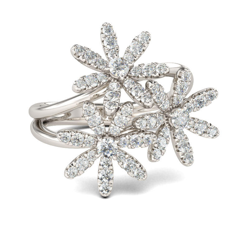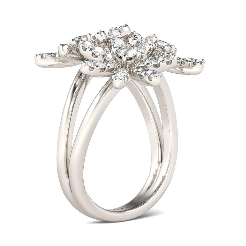Jeulia Flower Design Split Shank Sterling Silver Ring