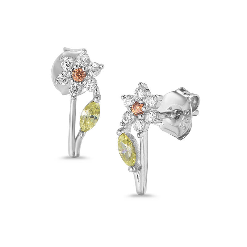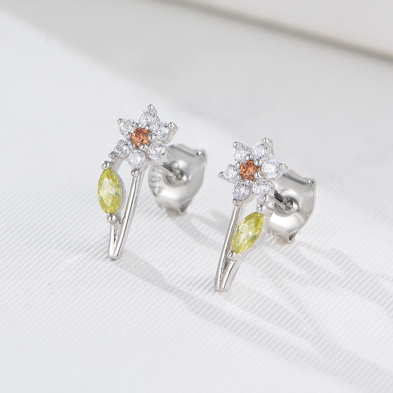 Refreshing, delightful, and a little bit sweet, these flower-shaped earrings are truly a surprising treat on any occasion! Crafted in sterling silver, the spring-colorful stones in round and pear shapes make up the whole flower, while peridot-green leaf adds fun to the design