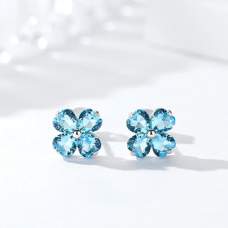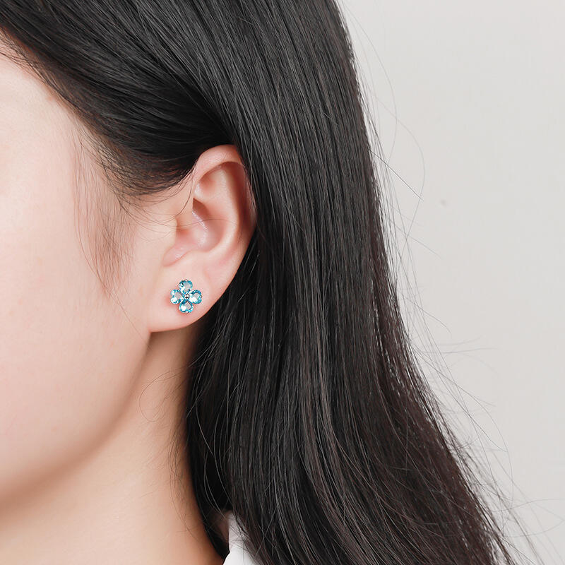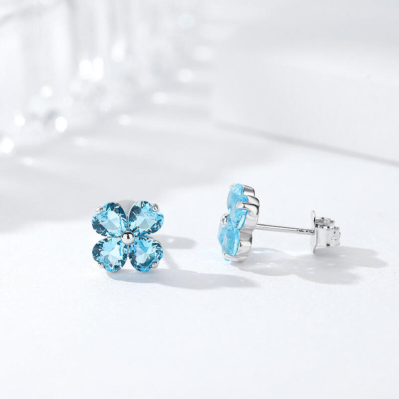 Sure to steal her heart, these four leaf clover stud earrings are a lucky look she'll love to wear. Created in sterling silver, each blissful earring features a quartet of aquamarine blue heart-cut stones. Wear these stud earrings as a reminder to keep your heart open to sweet serendipity.