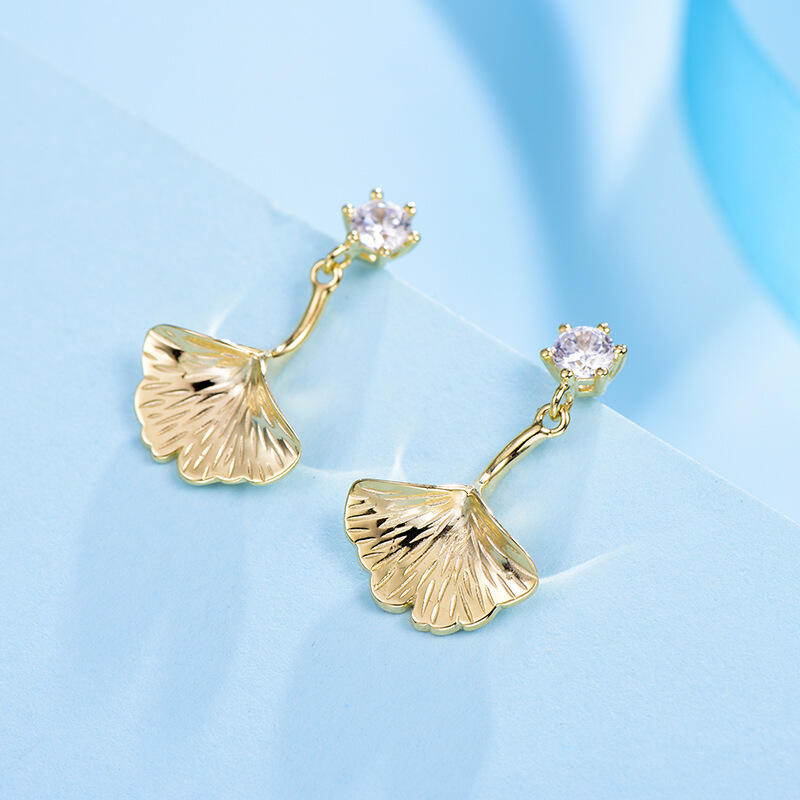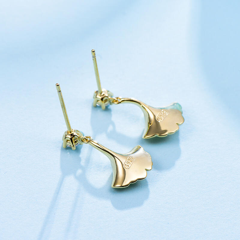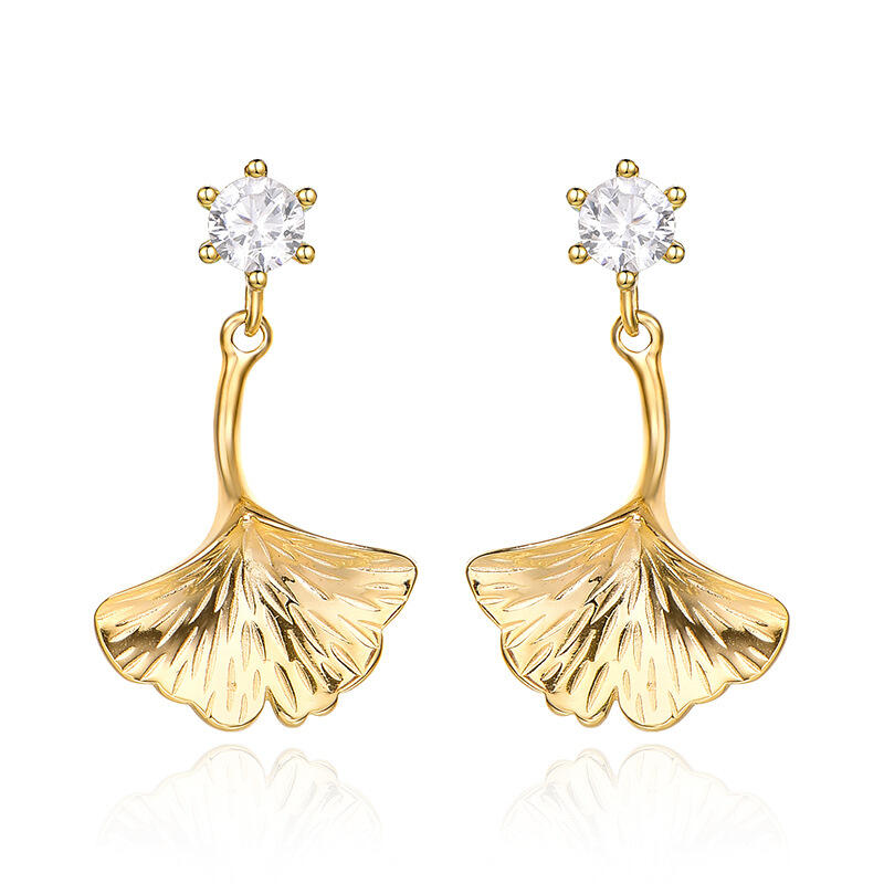 A symbol of life and hope, the ginkgo leaf features in this elegant and sophisticated piece of jewelry, which has been hand-crafted in sterling silver and plated in yellow gold. An ode to nature's beauty, the ginkgo biloba drop earrings are true statement pieces.