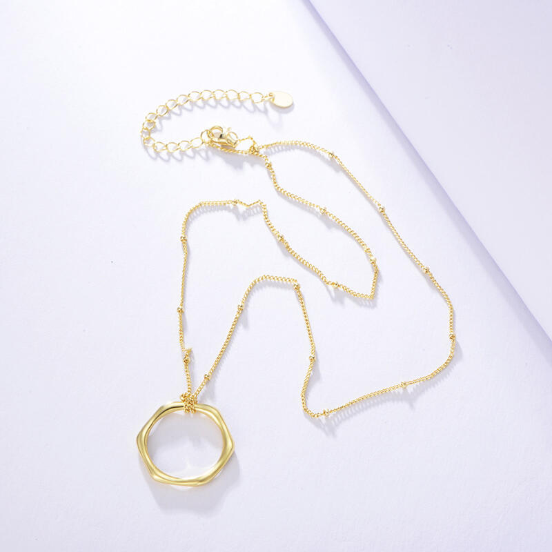 Simply but uniquely designed, this necklace features a geometric style. Crafted in 925 sterling silver with gold plate, the round and hexagon shape is a timeless fashion style that will always catch the trend.