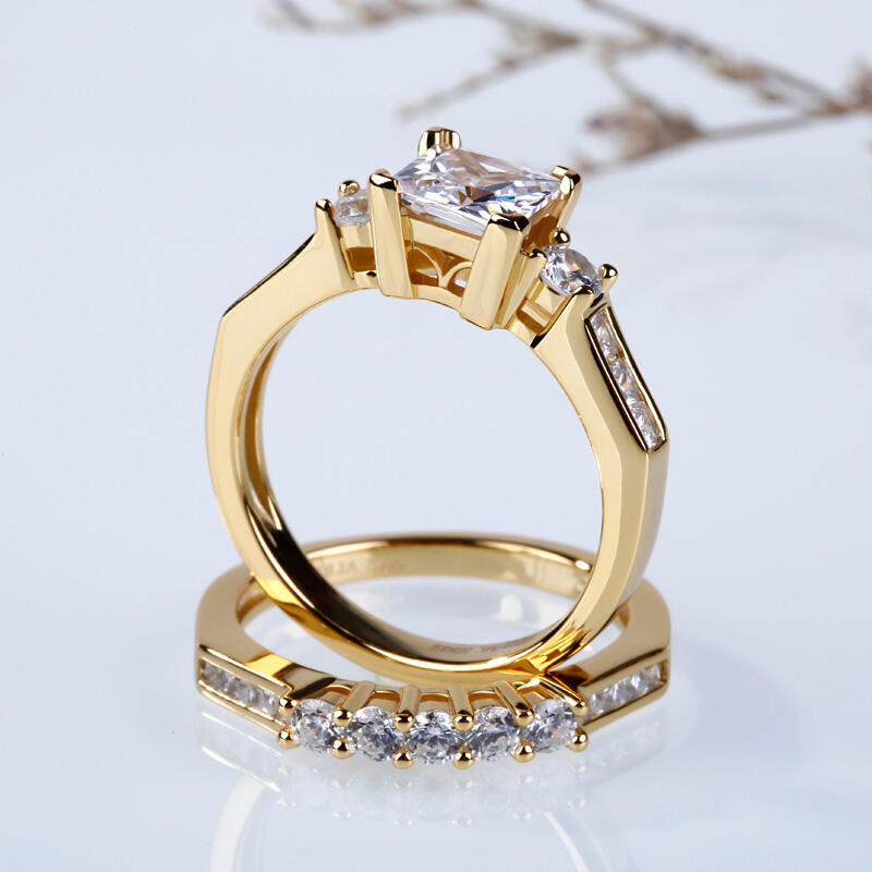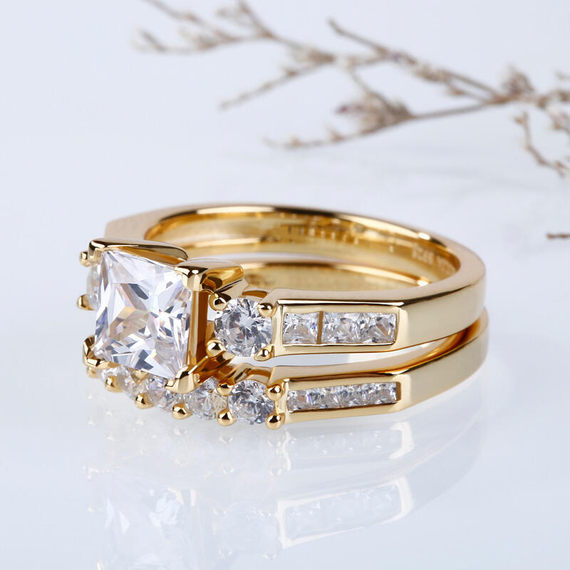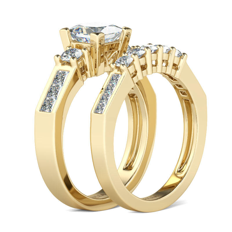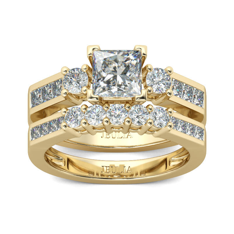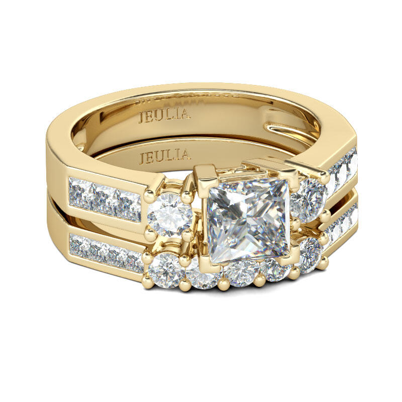 Jeulia Three Stone Princess Cut Sterling Silver Ring Set