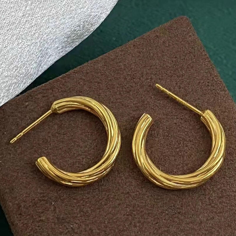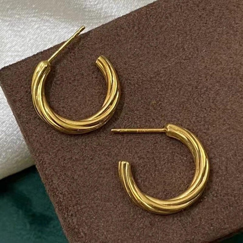 The twisted hoop earrings captivate you with their flawless splendor and style of the glossy polished metal offering an aesthetic twisted design with a classic hoop pattern for an added touch of grace. Twisted hoop is a retro trend of hoop earrings, it will be an eye-catching jewelry whether you're in jeans or you're dressed up for a special event.