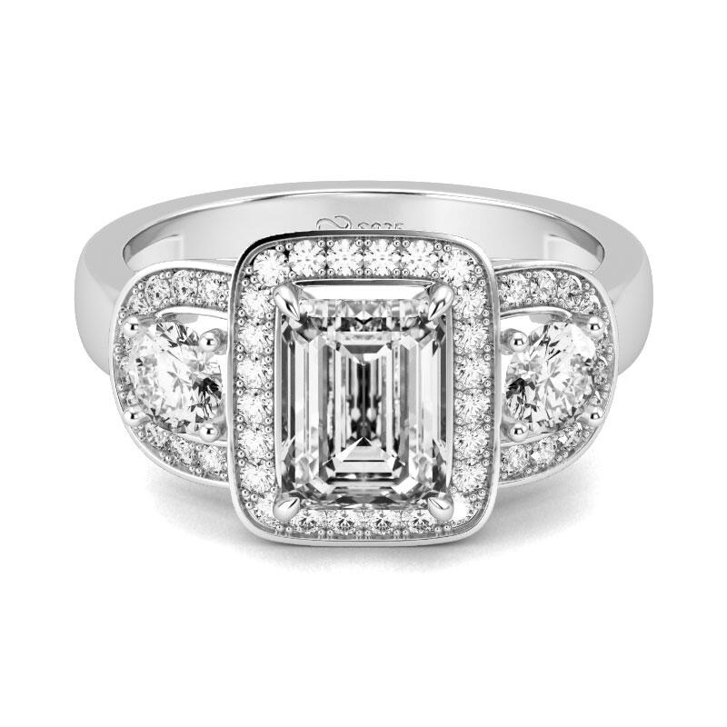 Jeulia Halo Emerald Cut Sterling Silver Ring