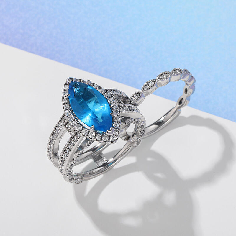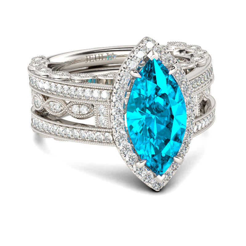 Jeulia Halo Marquise Cut Interchangeable Sterling Silver Ring Set