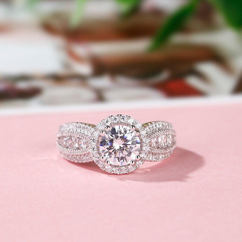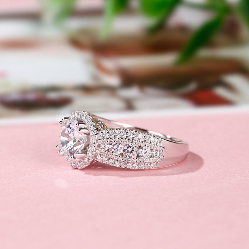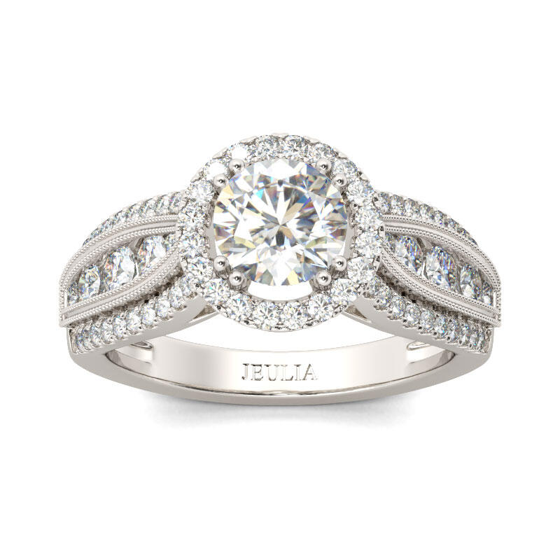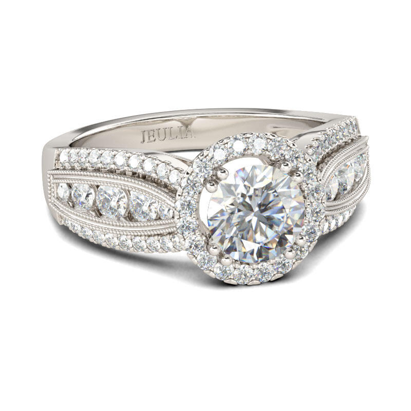 Jeulia Halo Milgrain Round Cut Sterling Silver Ring