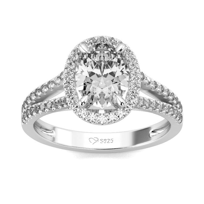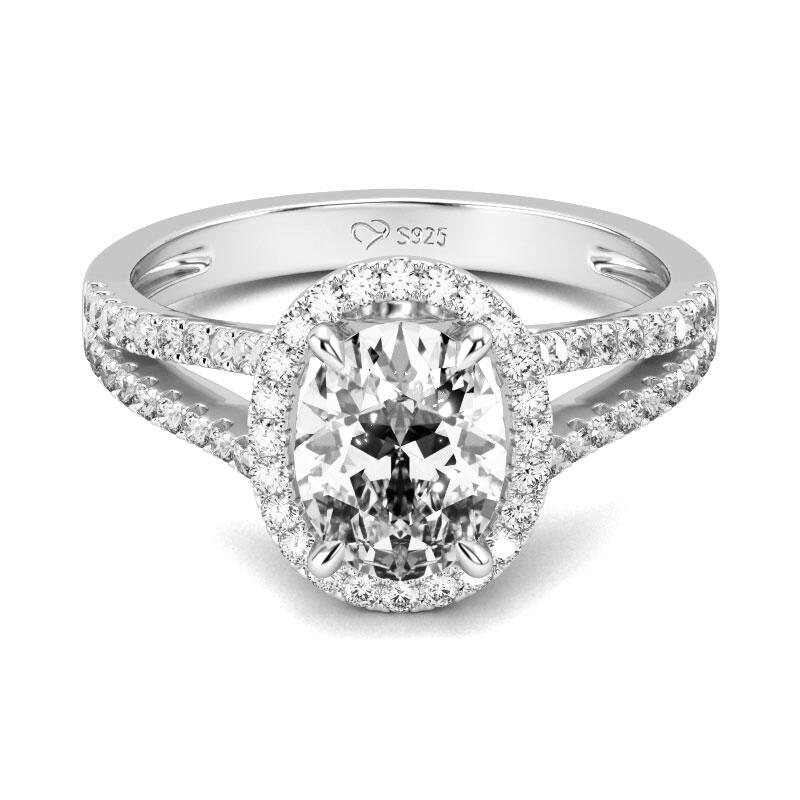 Jeulia Halo Oval Cut Sterling Silver Ring