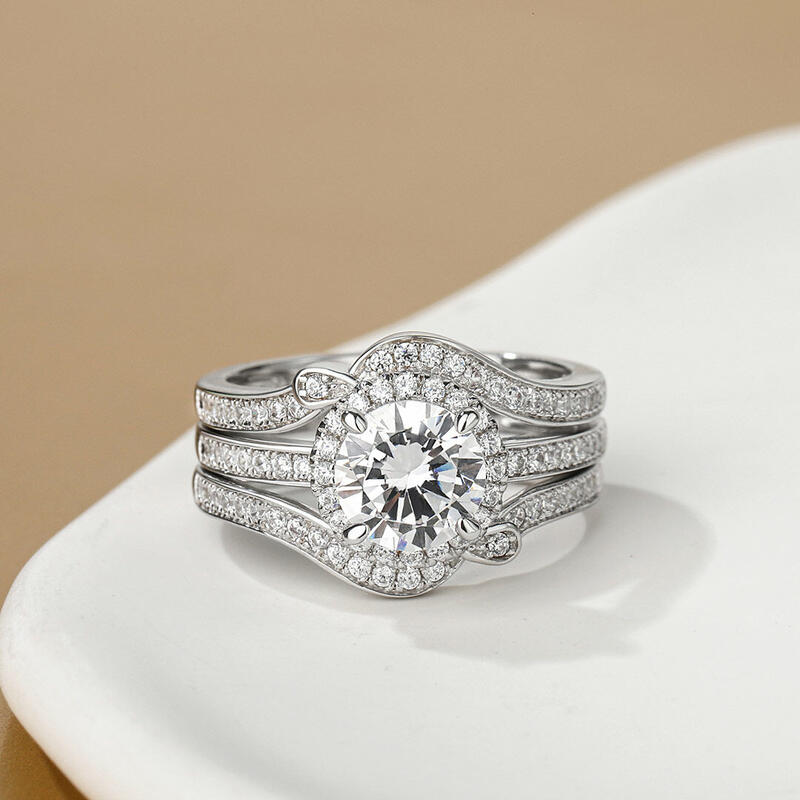 Jeulia Halo Round Cut Interchangeable Sterling Silver Ring Set