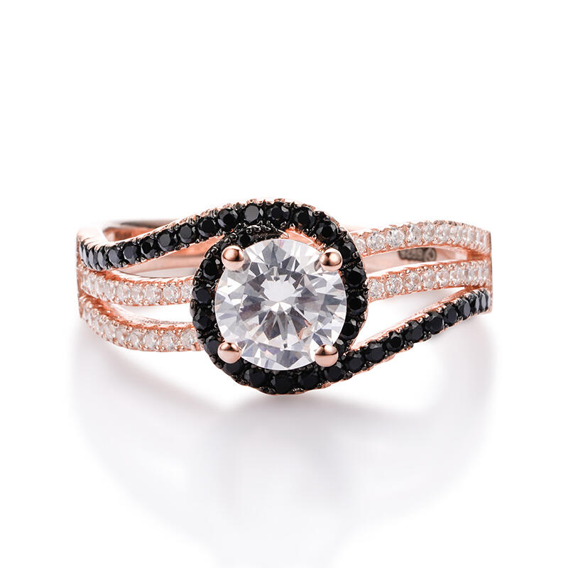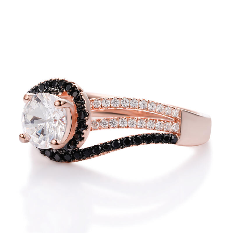 Make any day special with this graceful engagement ring. Bright and beautiful, this engagement ring features a sparkling round center stone surrounded by a halo frame of smaller round stones. The ring's split shank sparkles with additional round stones, completing this fabulous design. Polished to a brilliant shine, this ring honors your loving commitment to each other.