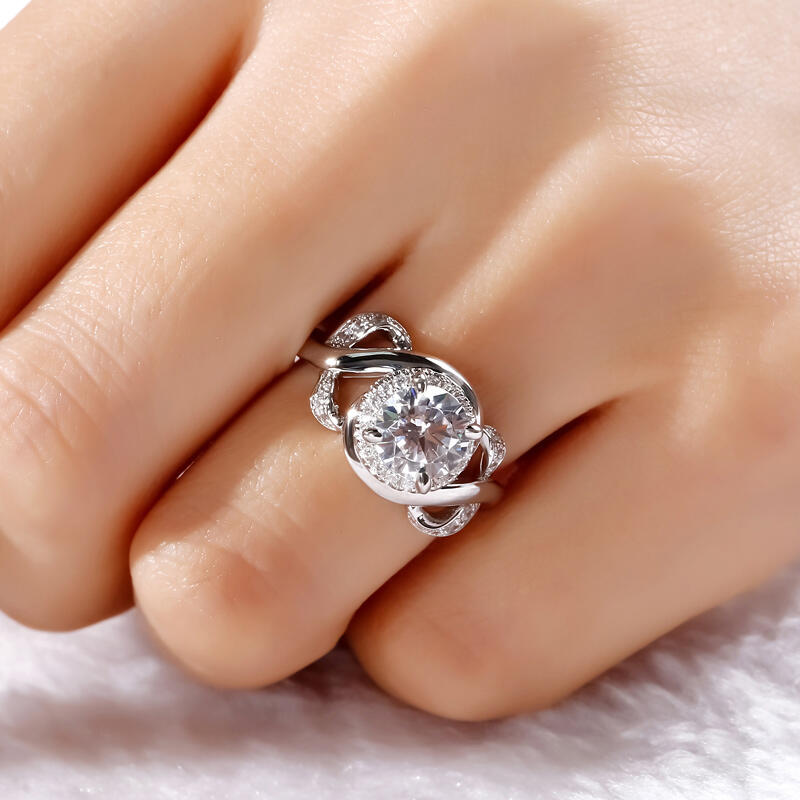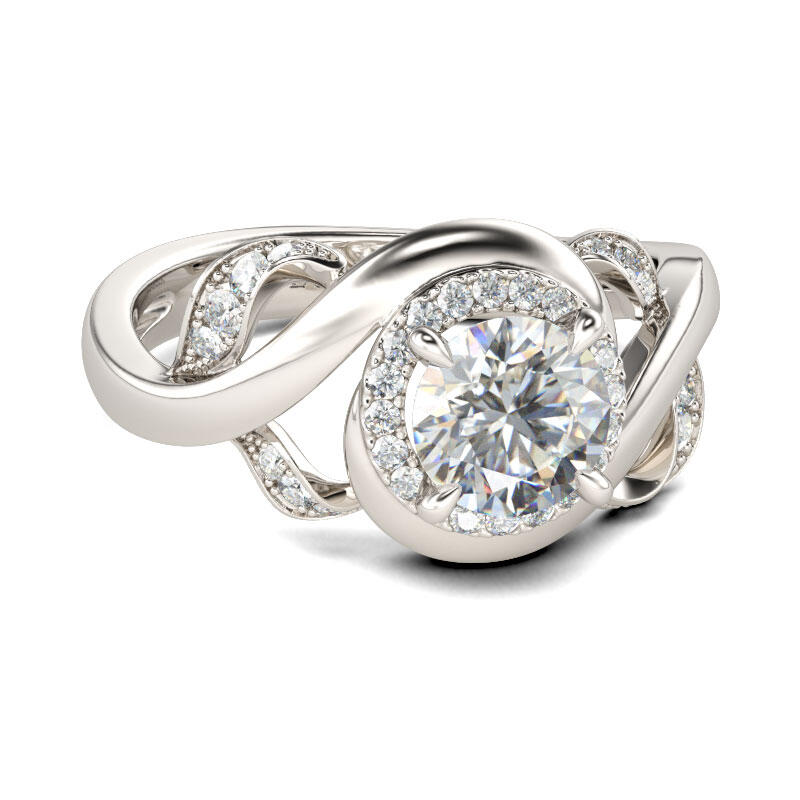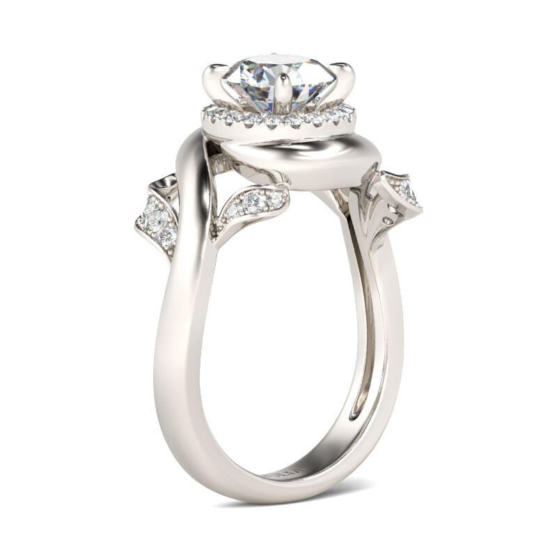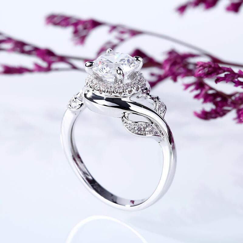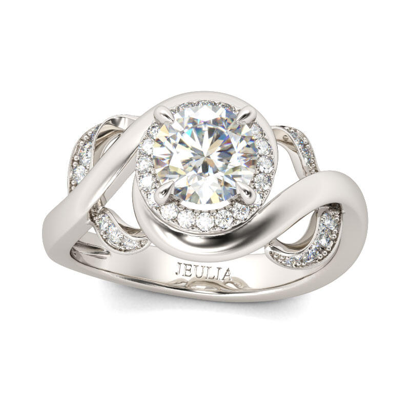 Make any day special with this graceful engagement ring. Bright and beautiful, this engagement ring features a sparkling round center stone surrounded by a halo frame of smaller round stones. Polished to a brilliant shine, this ring honors your loving commitment to each other.