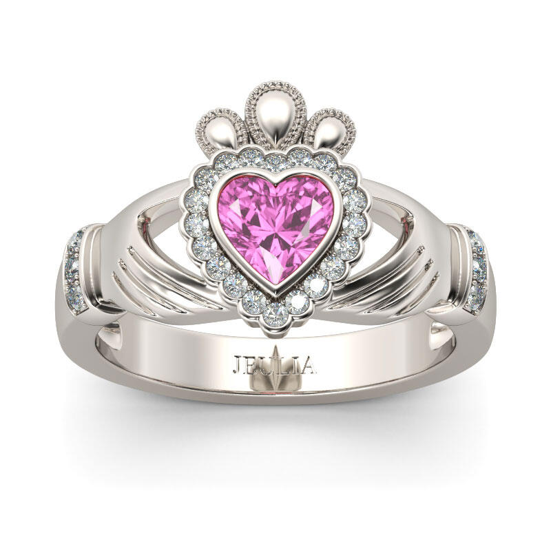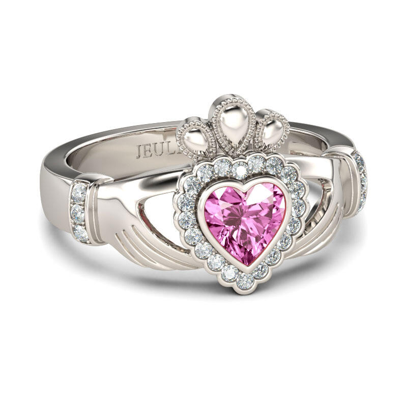 Jeulia Heart Cut Sterling Silver Claddagh Ring