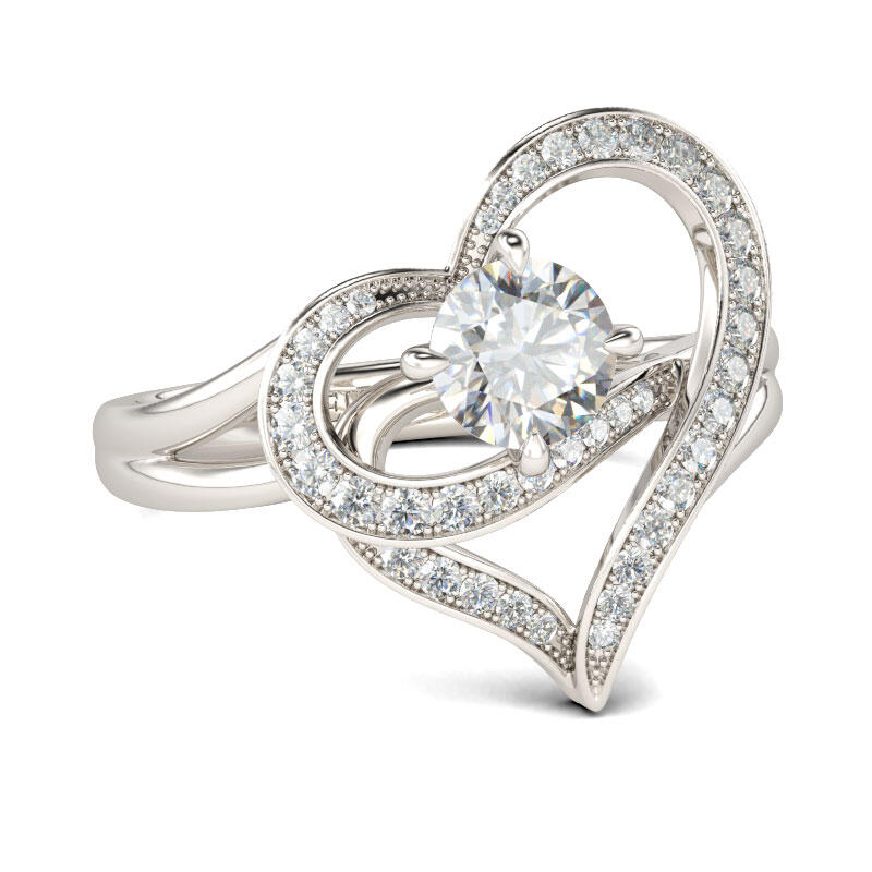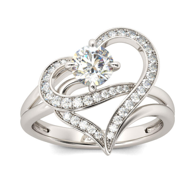 Jeulia Heart Design Round Cut Sterling Silver Ring