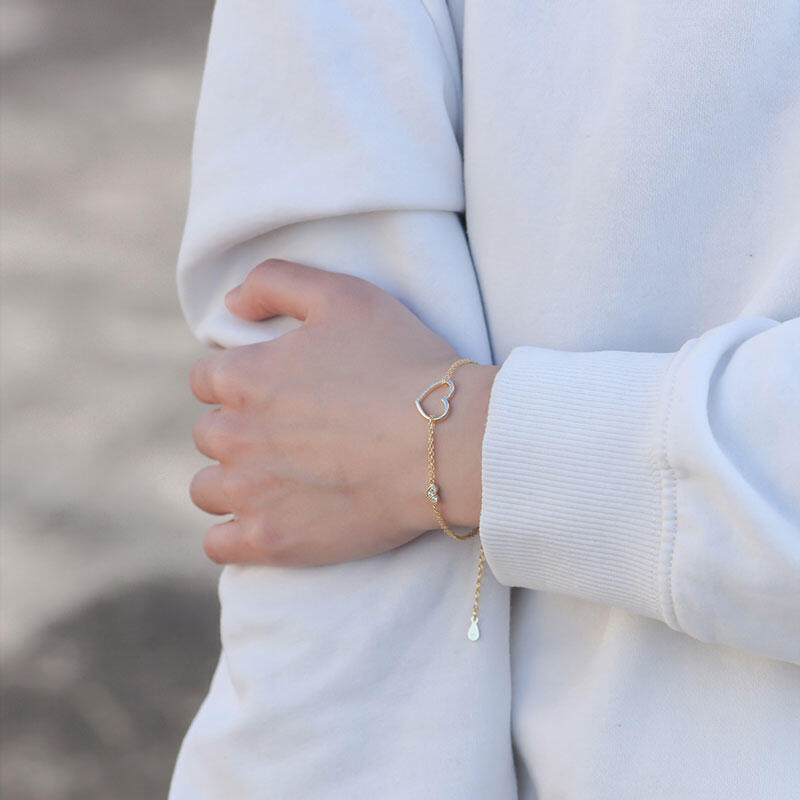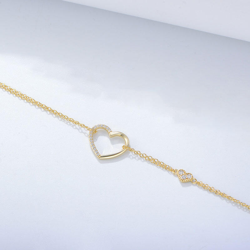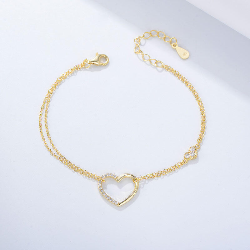 Jeulia Heart Double Chain Sterling Silver Bracelet
