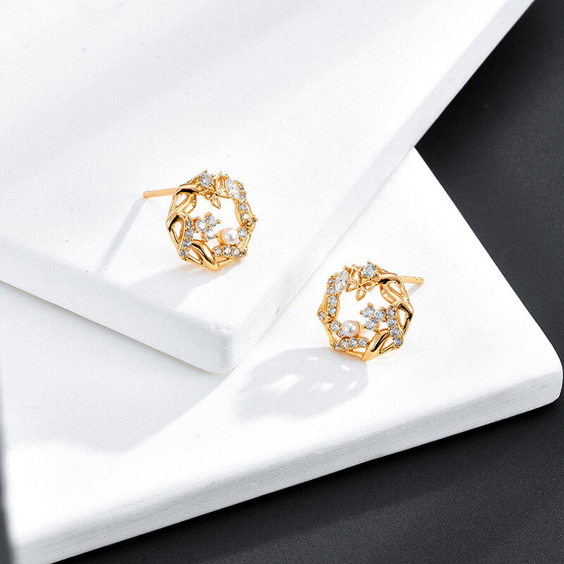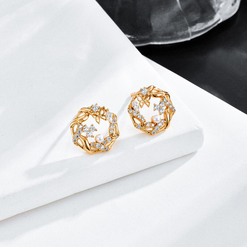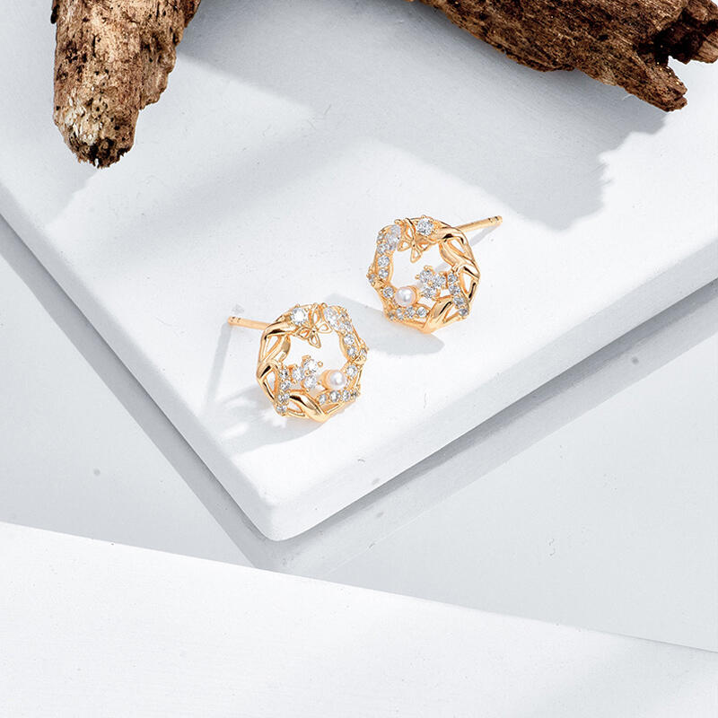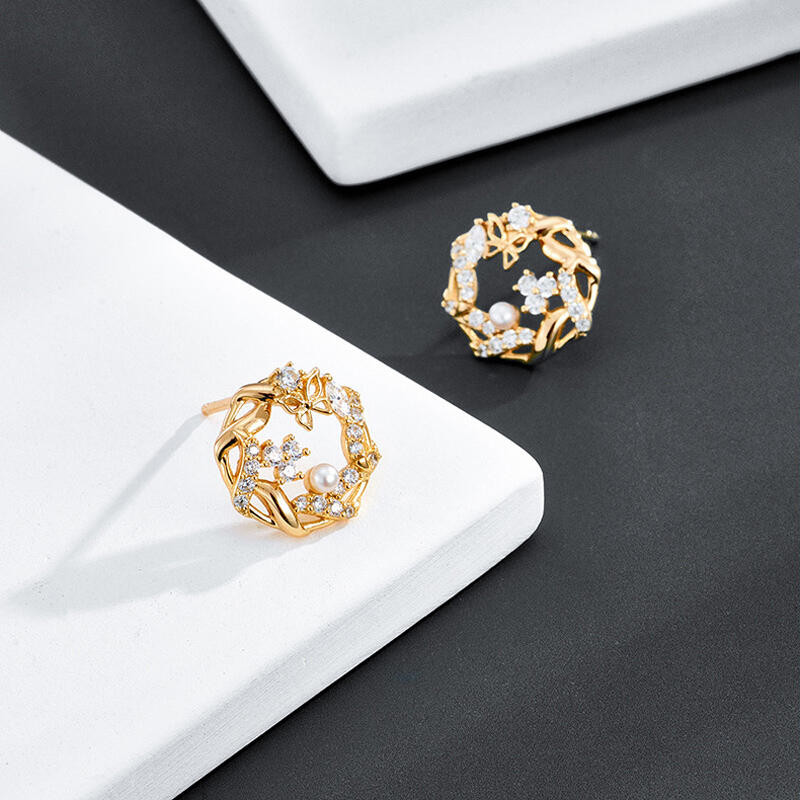 Jeulia Hollow Circle Butterfly Design Pearl Sterling Silver Earrings