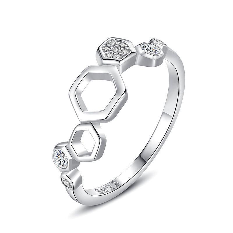 A bee works hard to build a sweet house, and the house brings warmth to her. Crafted in sterling silver, this mesmerizing ring featuring honeycomb lace design, decorated with sparkle stones.