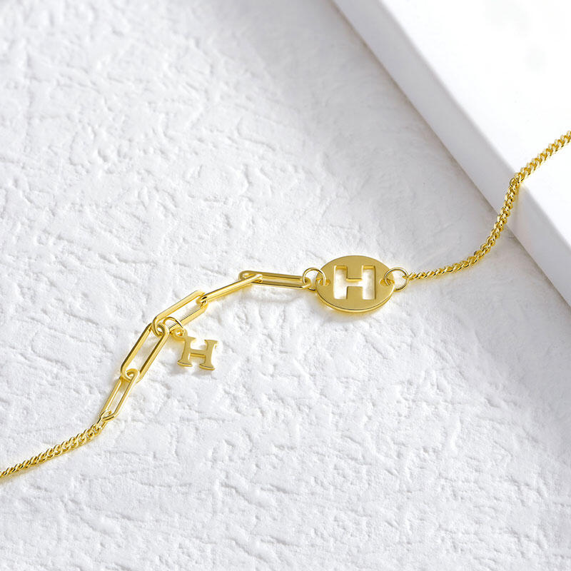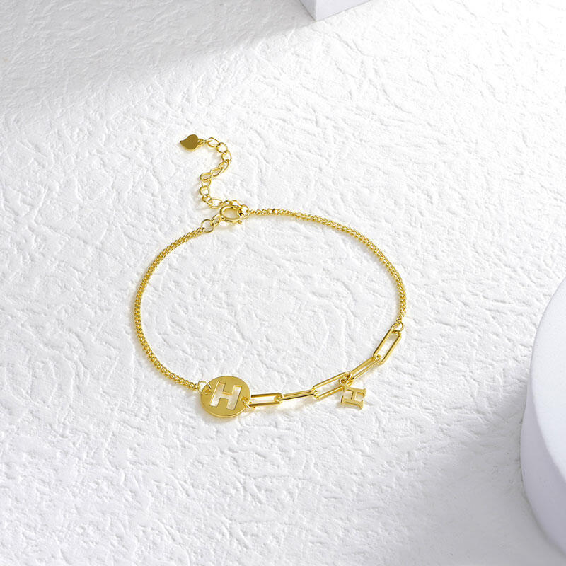 Looking for a piece of jewelry for day and night? Look no further, because we have the perfect match for you! The chain letter bracelet is made of gold plated silver and with two letters. Each letter tells a story, what will be yours? Express yourself by this bracelet.