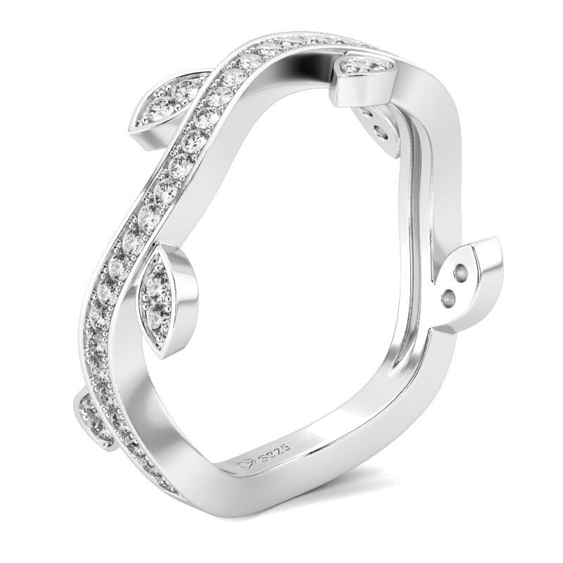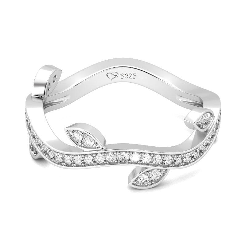Jeulia Leaf Design Round Cut Sterling Silver Women's Band