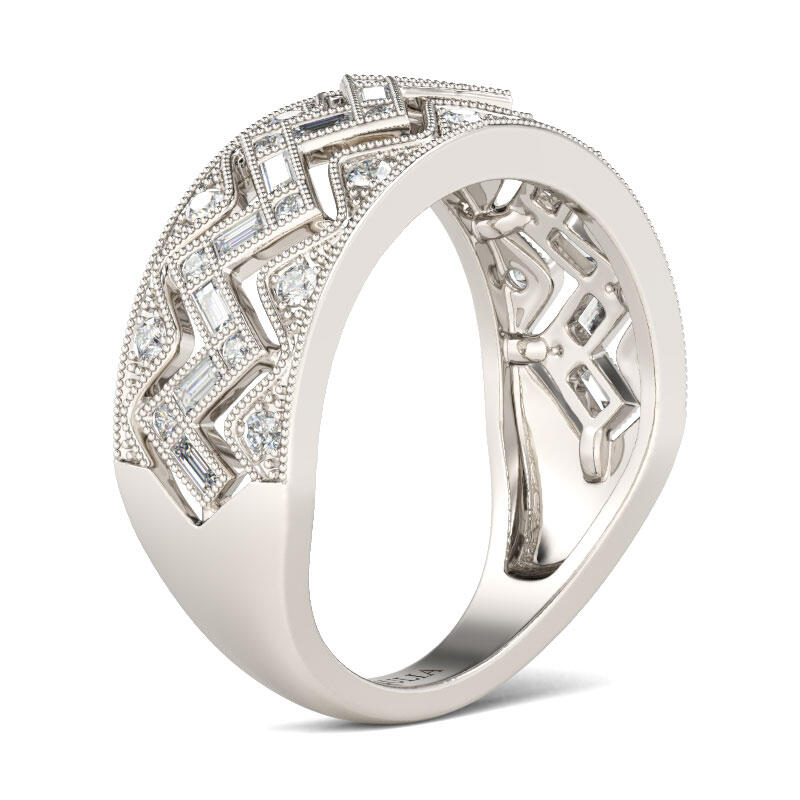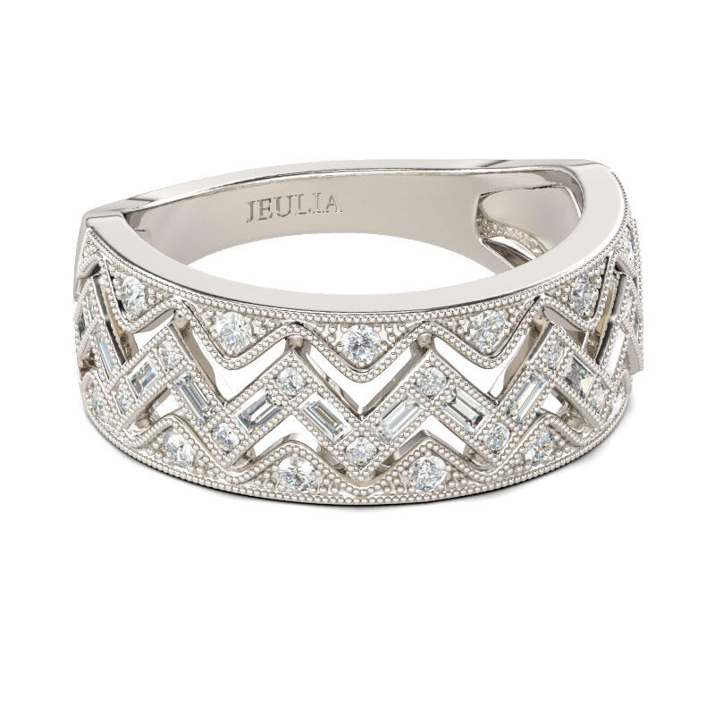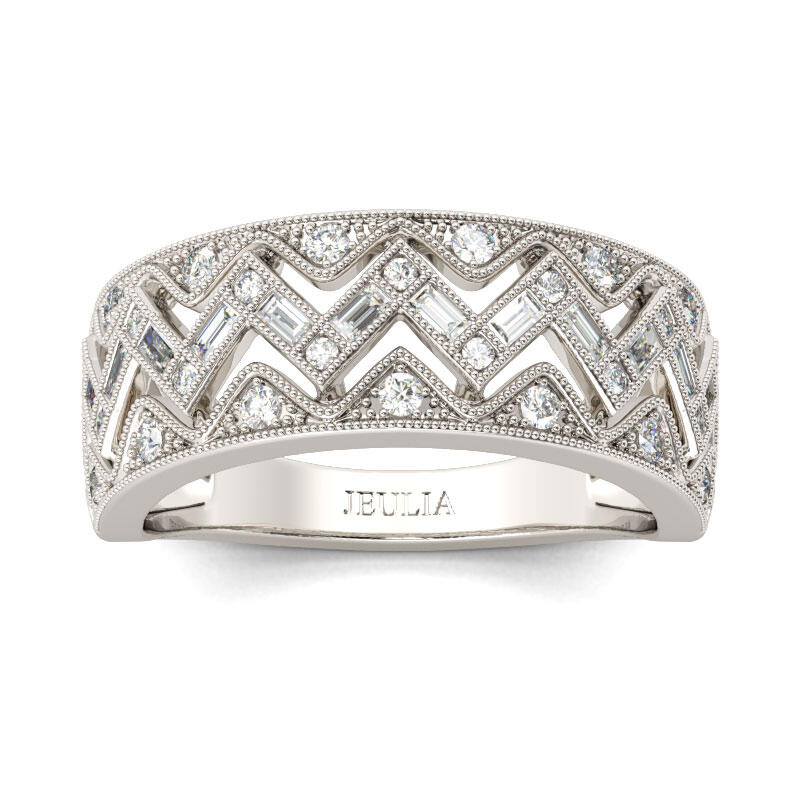 Jeulia Milgrain Art Deco Round Cut Sterling Silver Women's Band