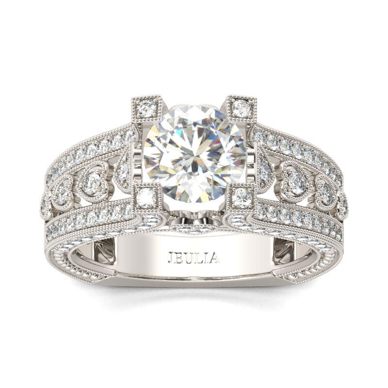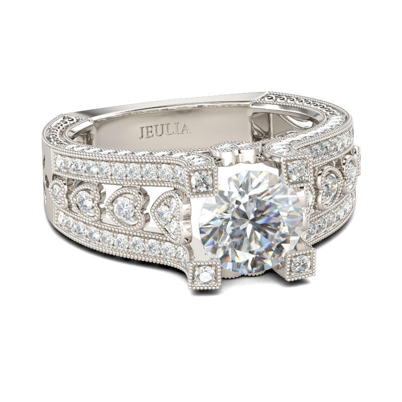 Jeulia Milgrain Heart Design Round Cut Sterling Silver Ring