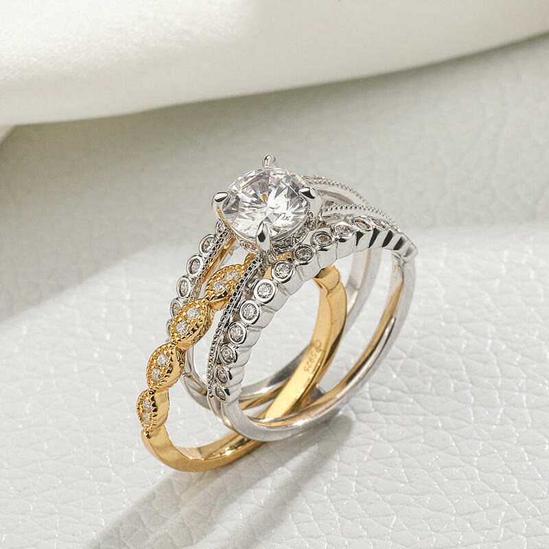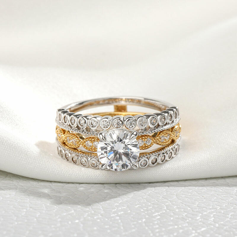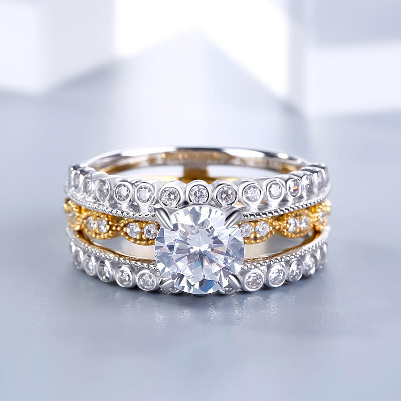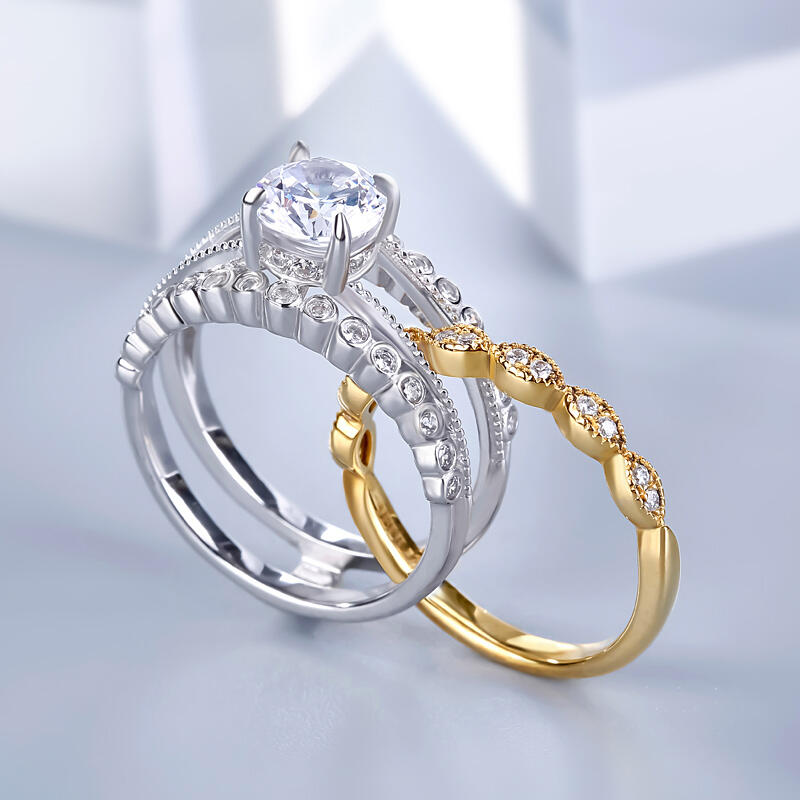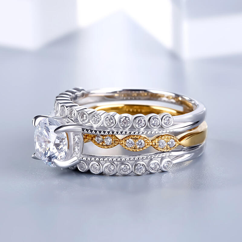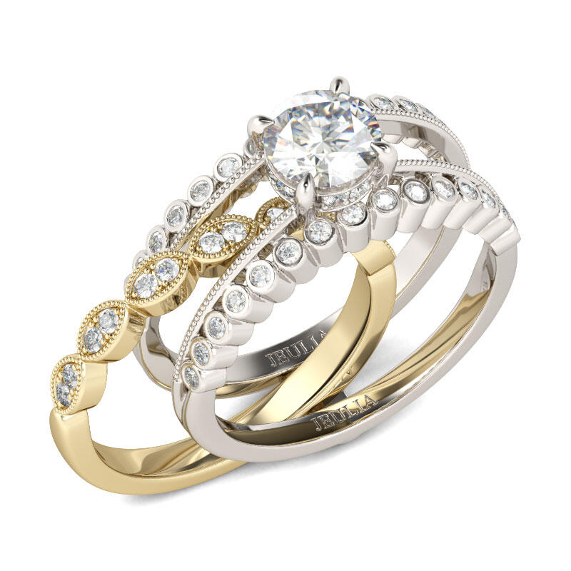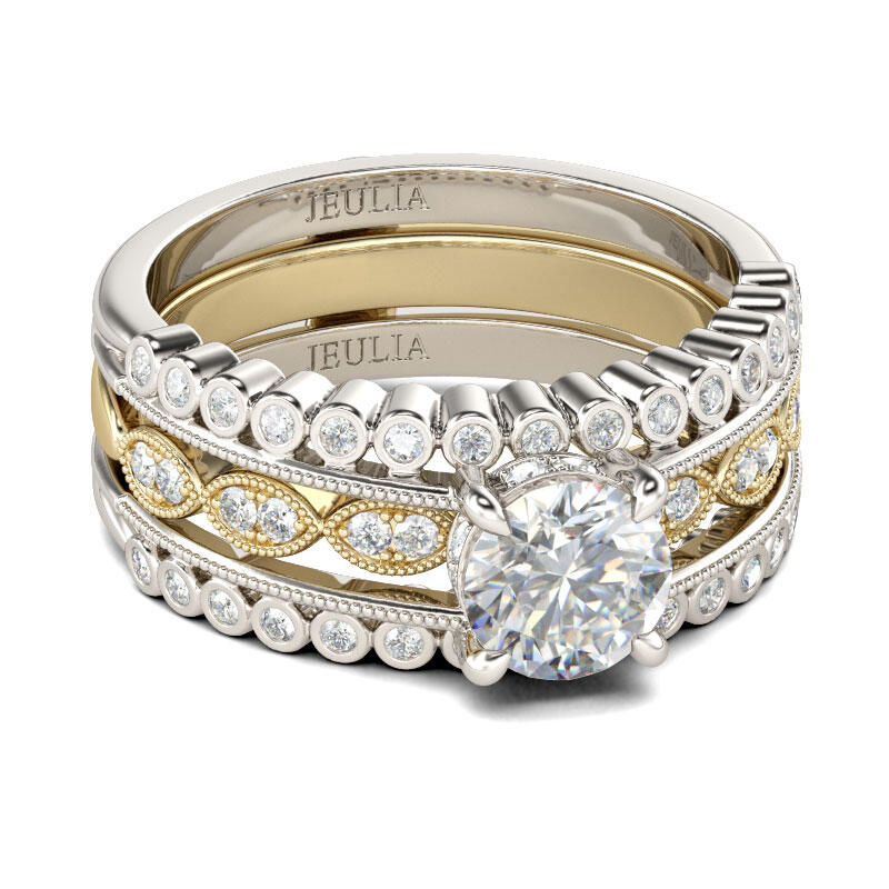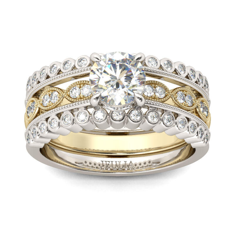 Jeulia Milgrain Round Cut Interchangeable Sterling Silver Ring Set