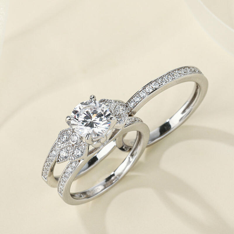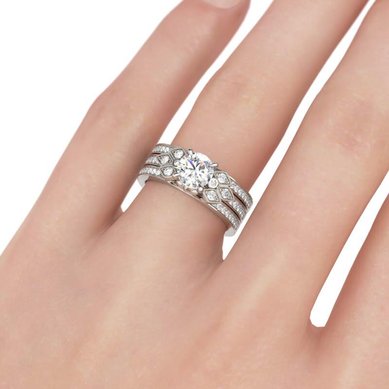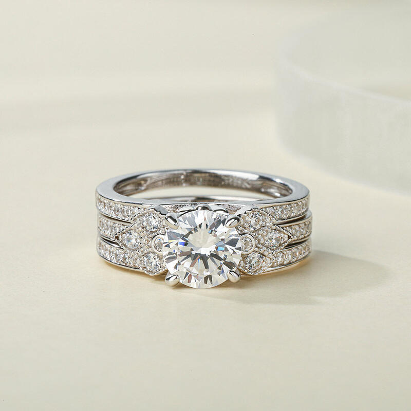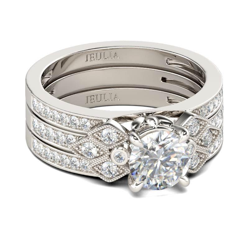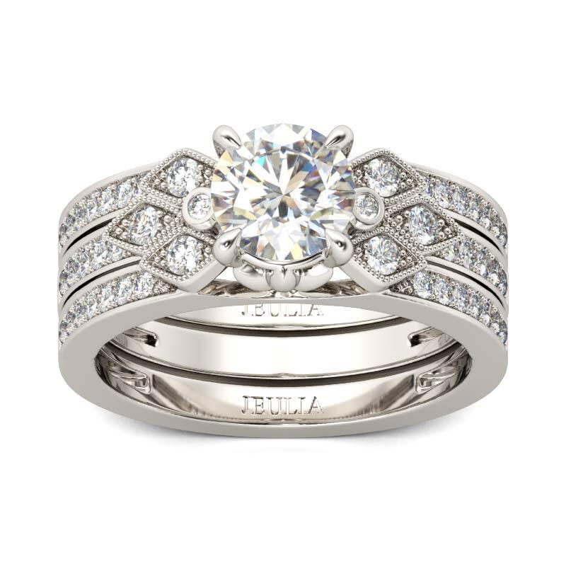 Jeulia Milgrain Round Cut Interchangeable Sterling Silver Ring Set
