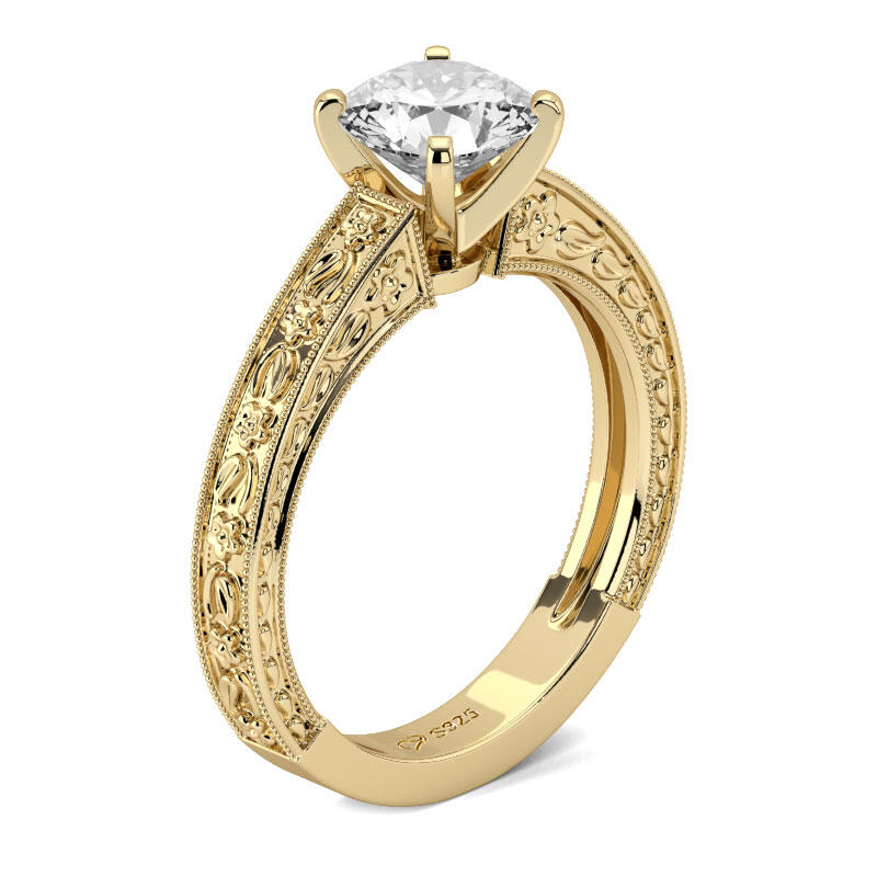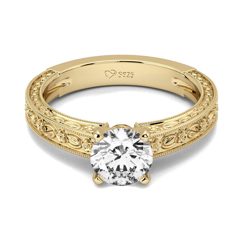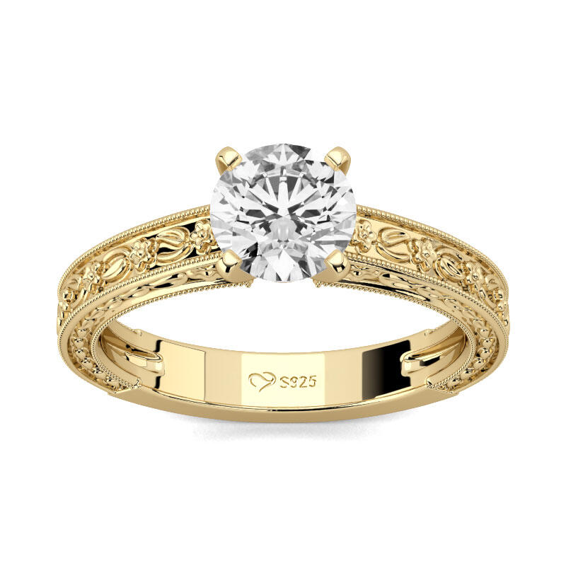 Delicate and sparkling, this ring will take your breath away at first sight. Crafted in sterling silver, this design features a round-cut center stone. Intricate milgrain detailing design in the shank creates an elegant look on your finger. This ring will turn heads everywhere you go! Just add it to your jewelry box!