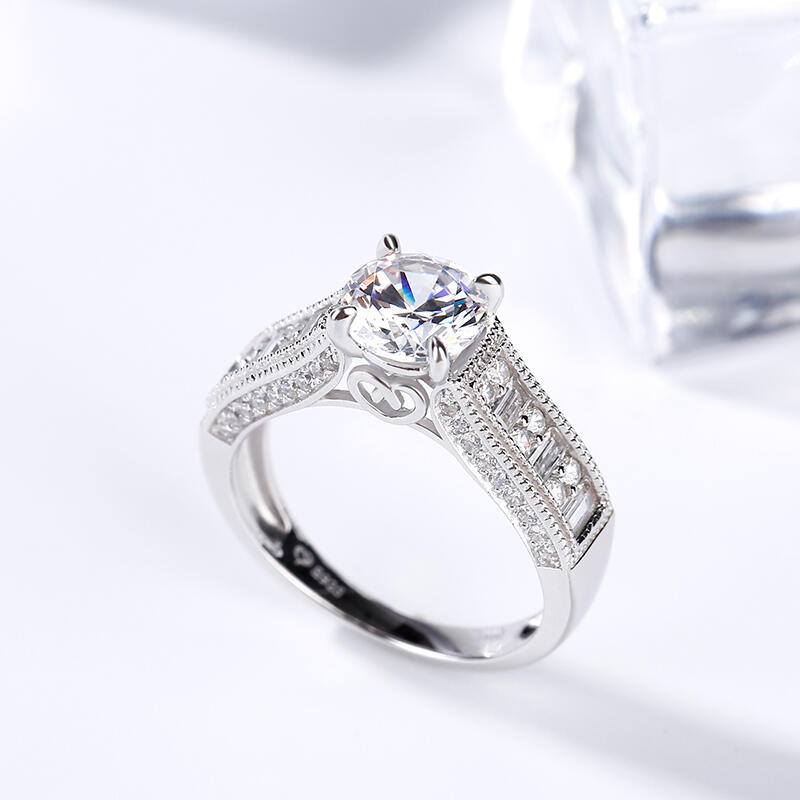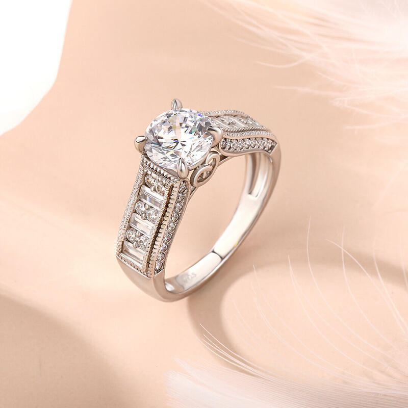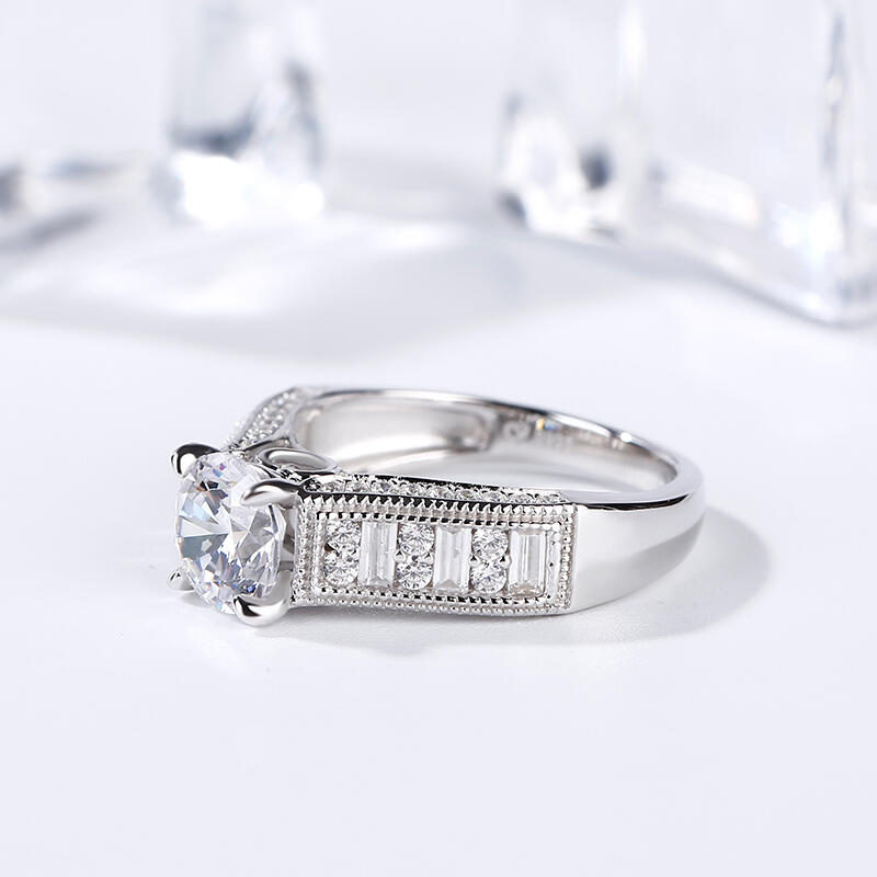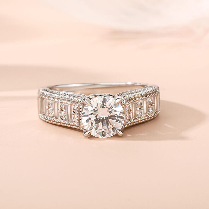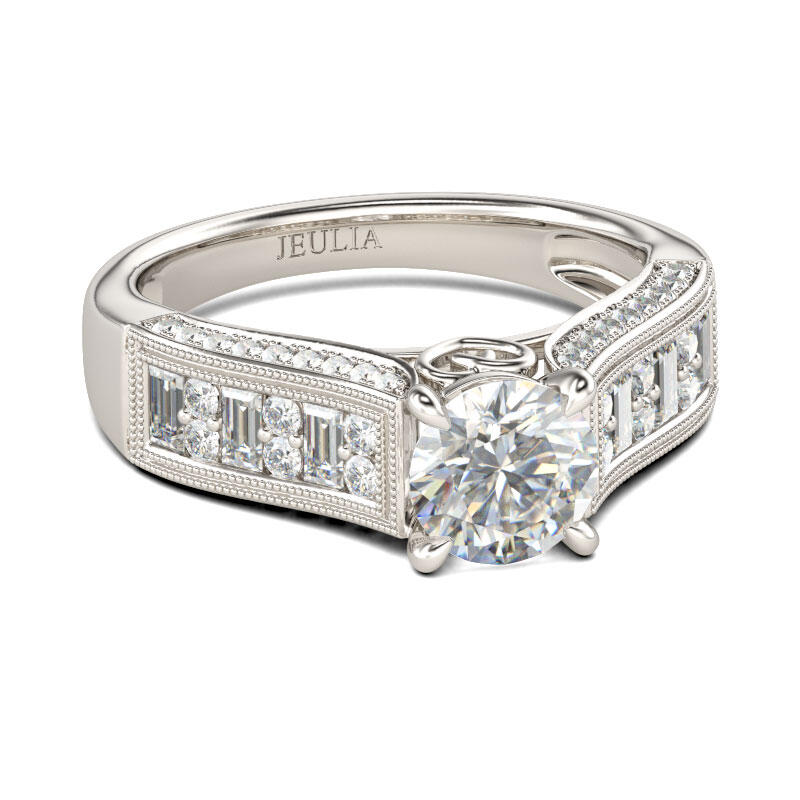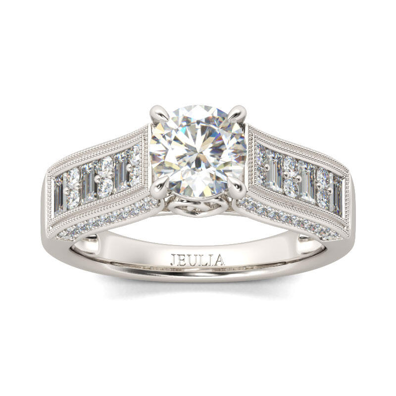 Jeulia Milgrain Round Cut Sterling Silver Ring
