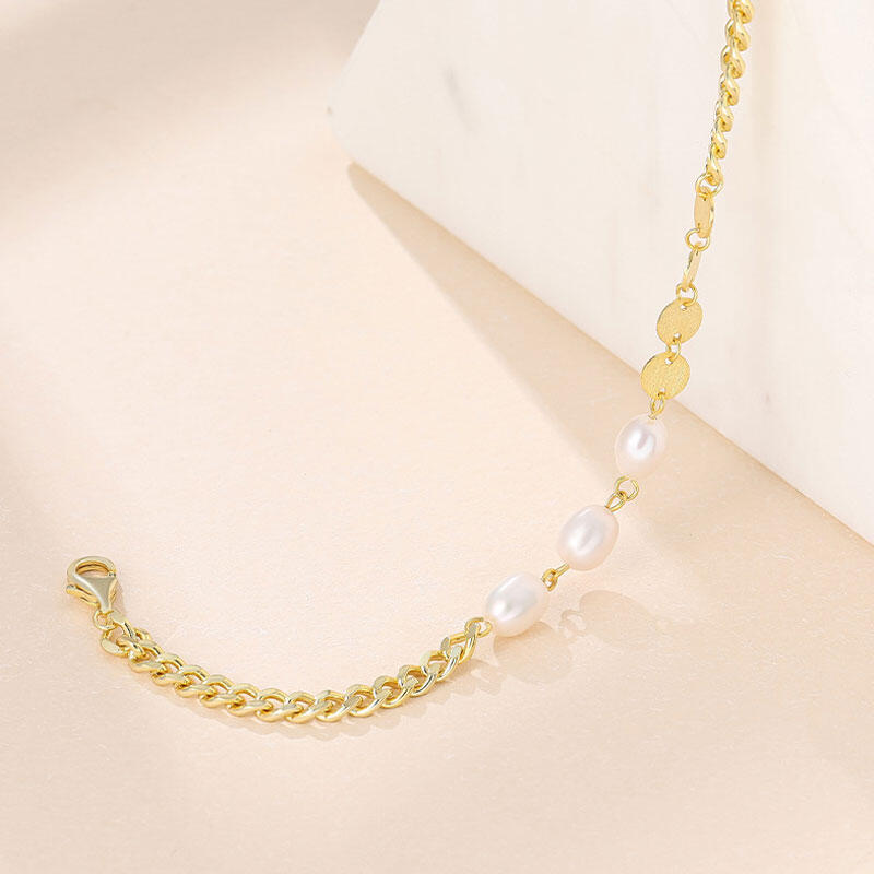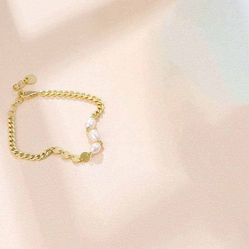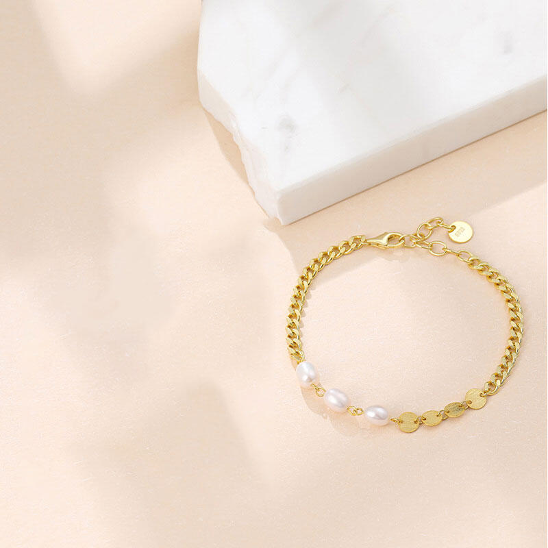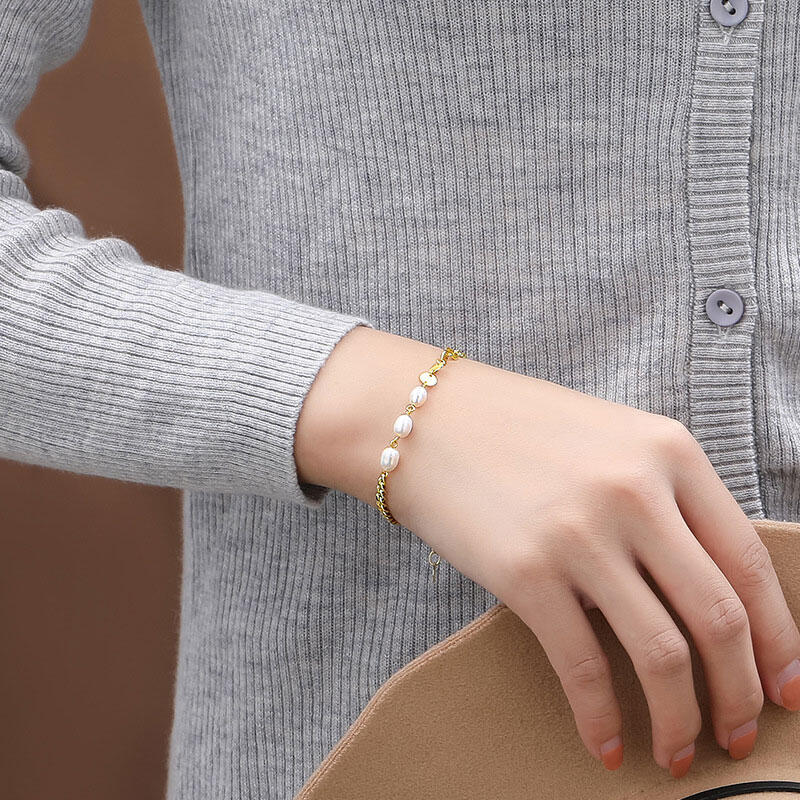 A modern version of a classic pearl bracelet, this piece showcases three freshwater pearls at the center with four silver circle. It looks great stacked with the small freshwater pearl Bracelet.