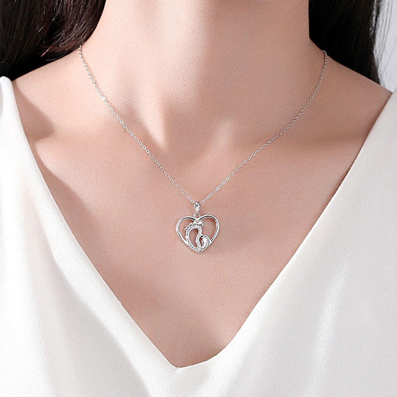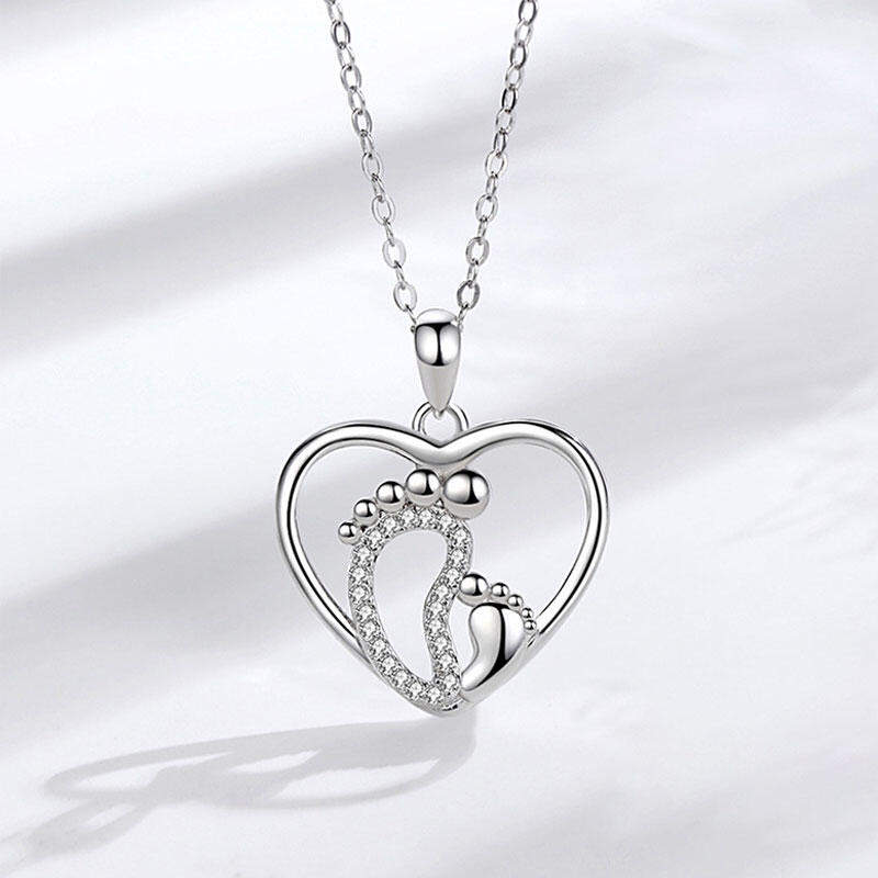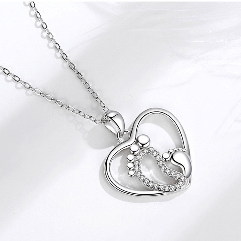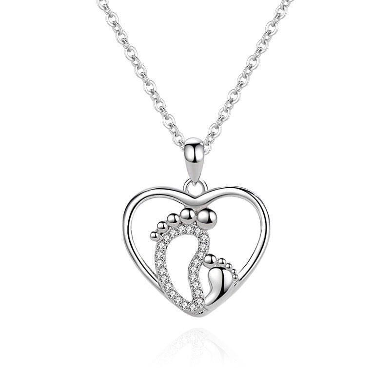 Our baby feet silver chain necklace will remind her of cherished memories and show her how much she means to you in your life. Made with 925 silver, our lovely motherly love necklace features a pendant with two feet side by side: the left is encrusted with stones while the right is smaller, signifying baby feet.