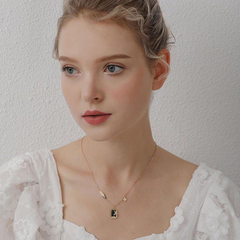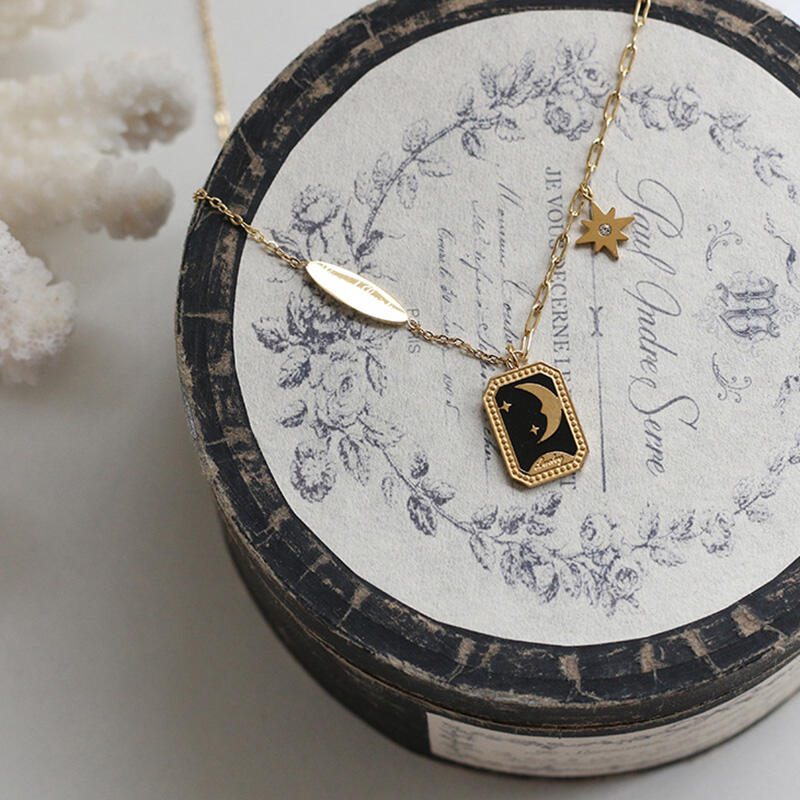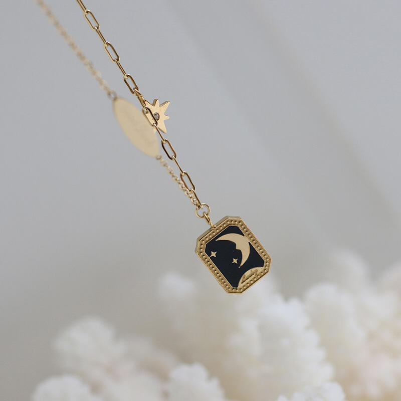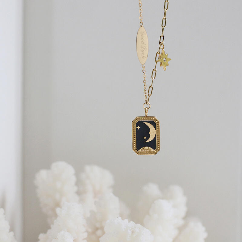 Jeulia Moon and Star Good Luck Titanium Steel Necklace