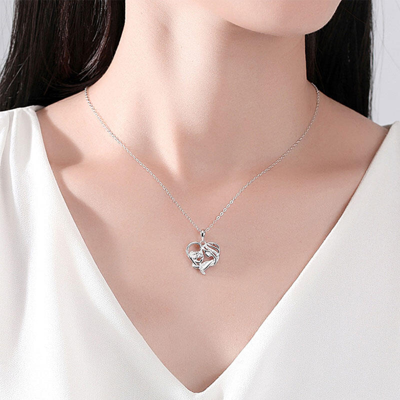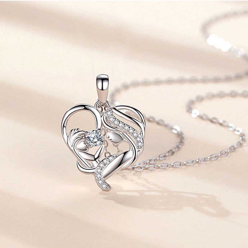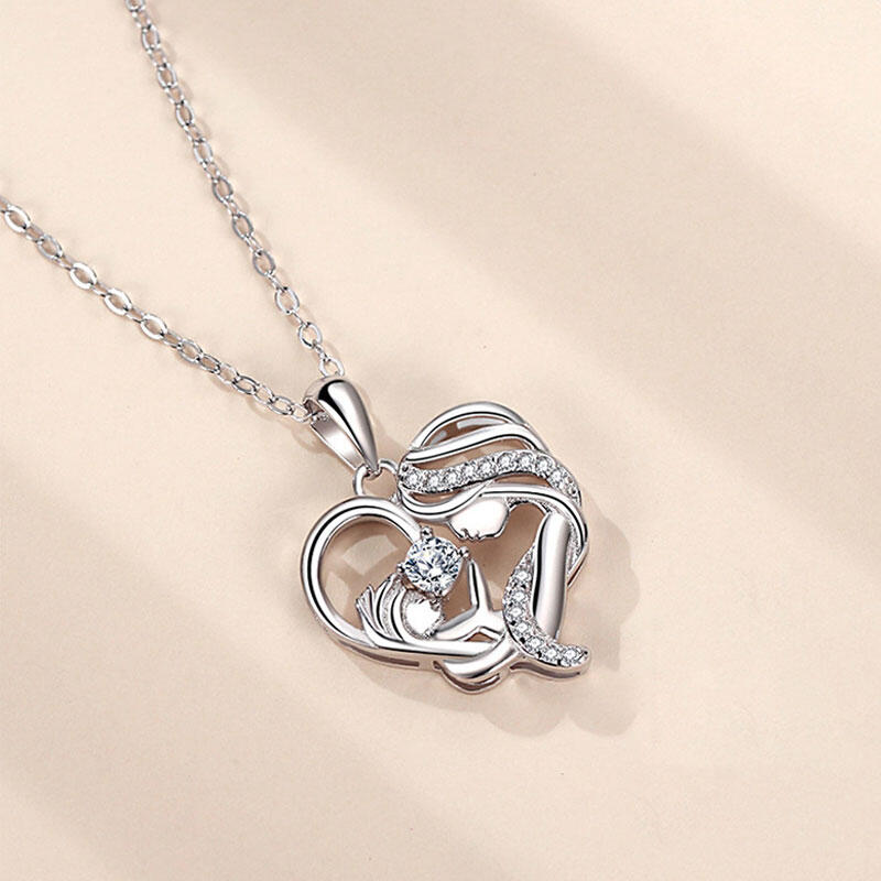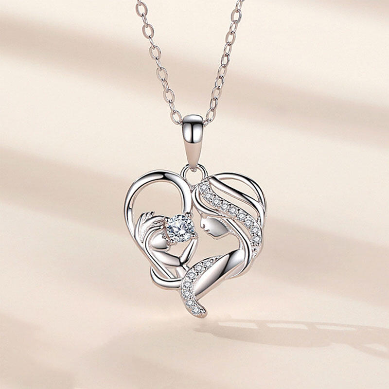 Jeulia Mother Holding Baby Heart Sterling Silver Necklace